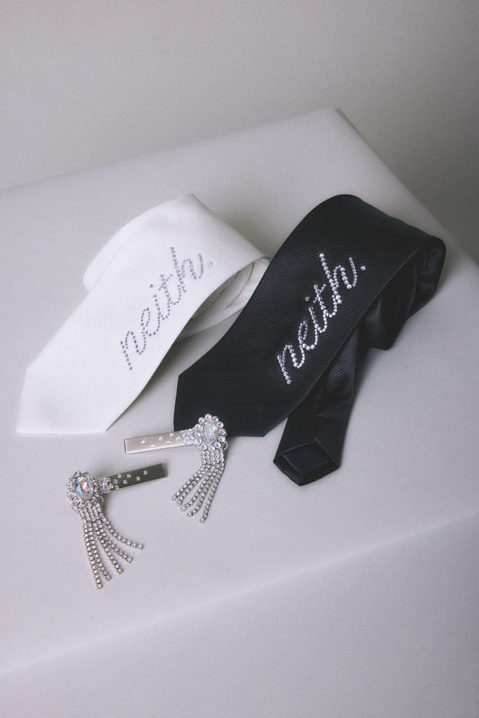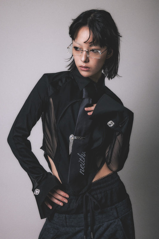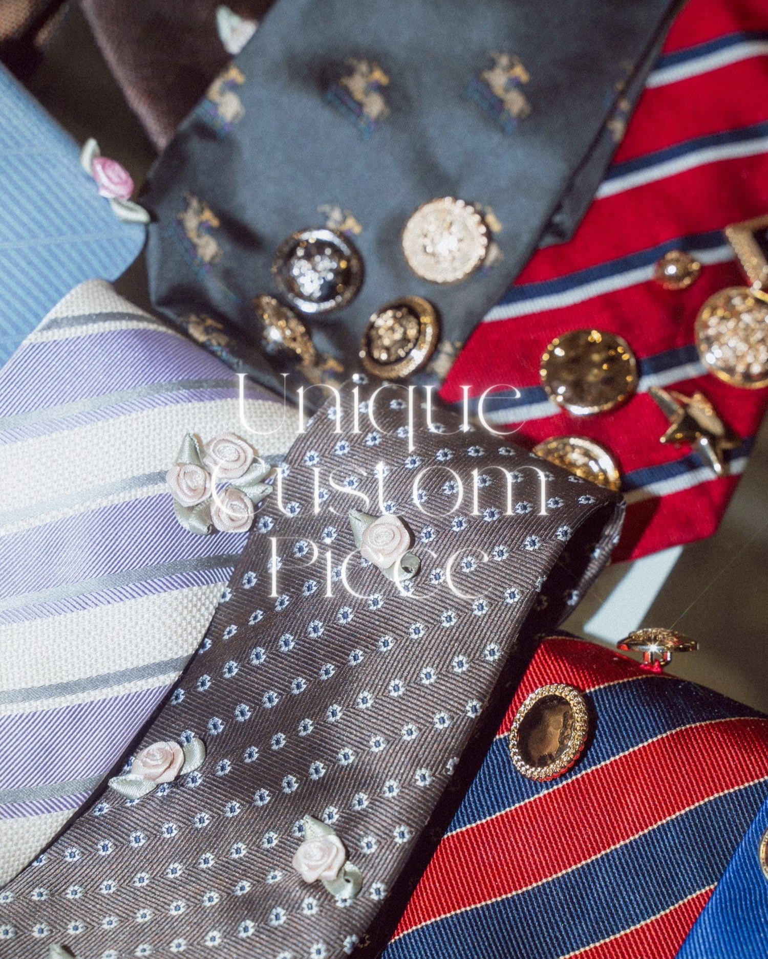 古着のジャケットやネクタイにneith. のクリエイションを加え、再構築した一点物のアイテムたち。
