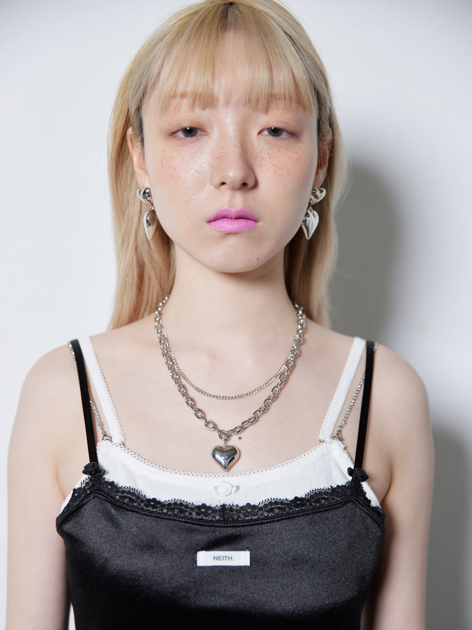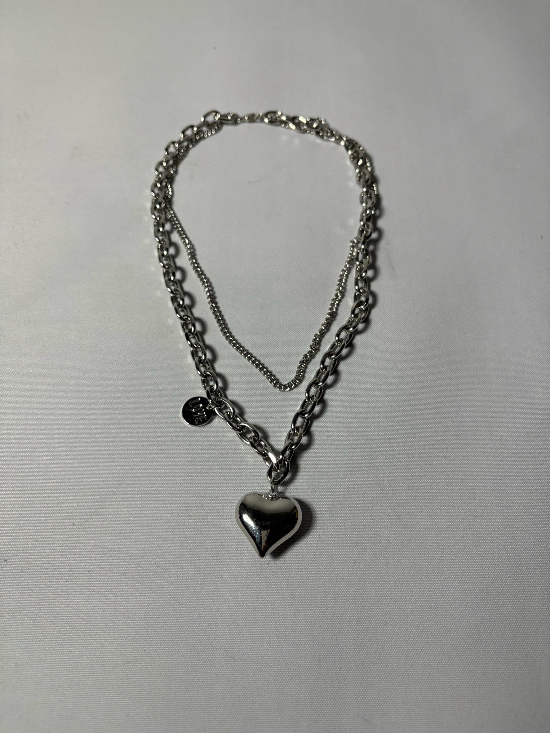 【Last1】Double Chain Heart Necklace(Silver)