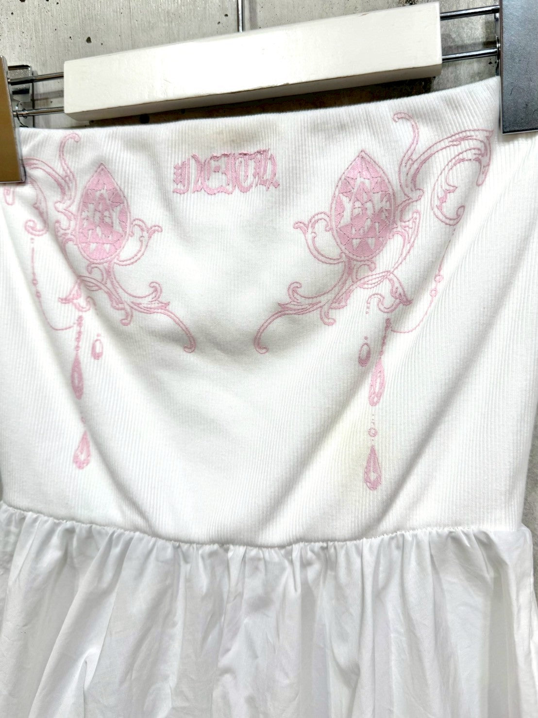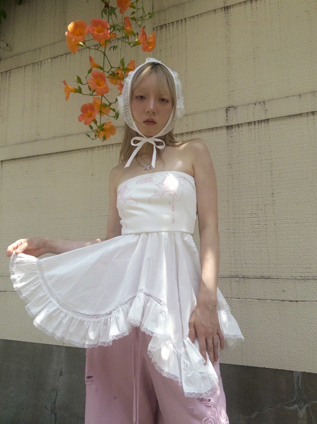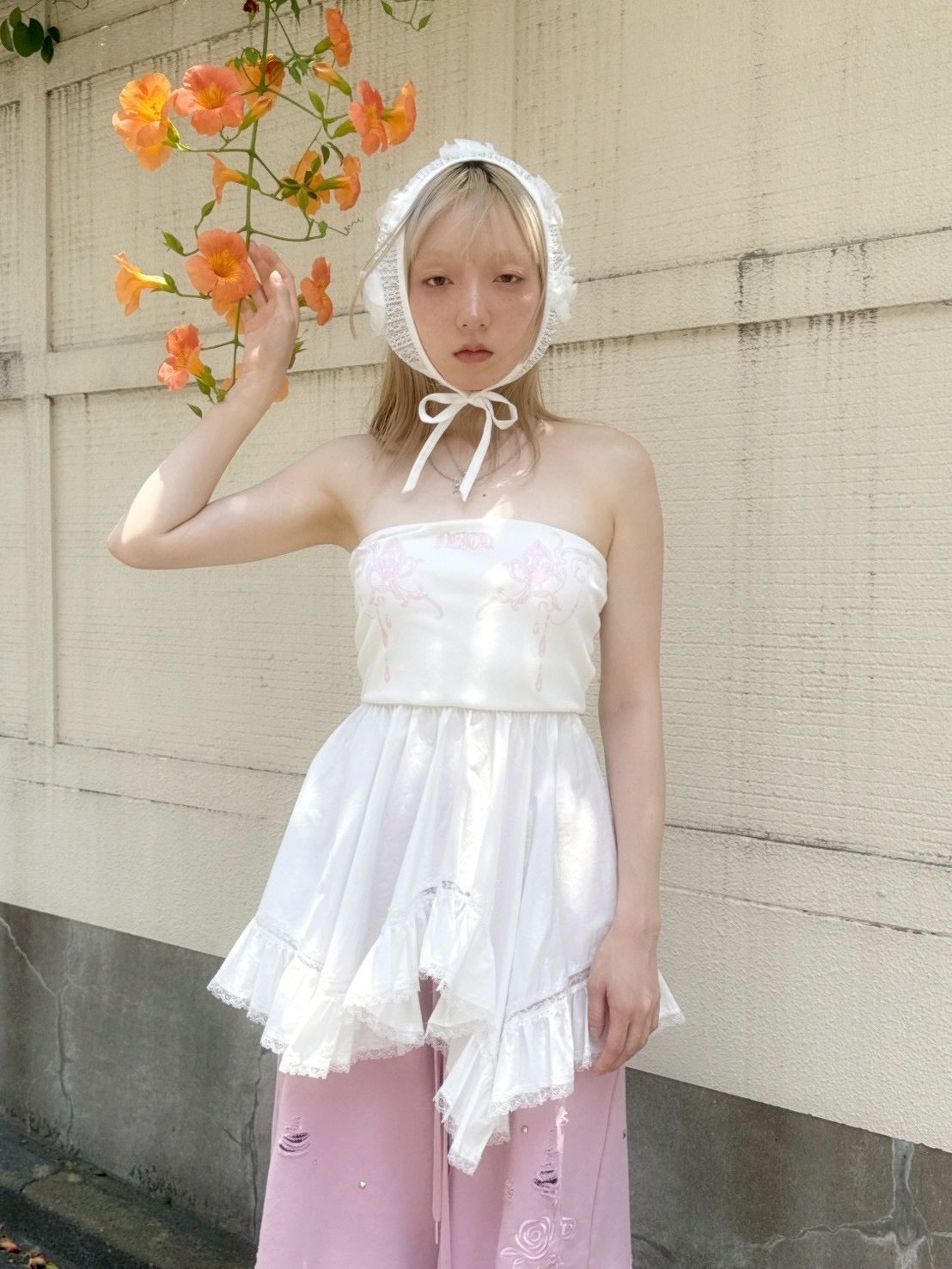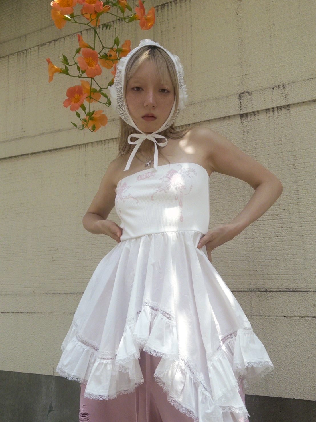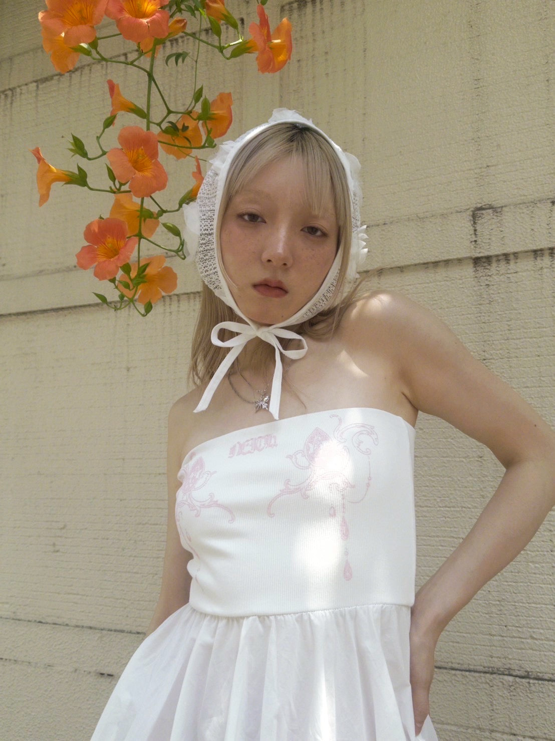 ヘルシーな着こなしで一枚でさらっと着ていただくのは勿論、レイヤードスタイルも楽しみやすいパッド無しタイプ。フィッシュテールのアシンメトリーデザインとneith.オリジナルプリントのバランス感が存在感を放ちます。ベースのキャミソールはストライプブルーと無地ホワイトの2色展開、プリント色はそれぞれぴったりの色をカスタムしました。