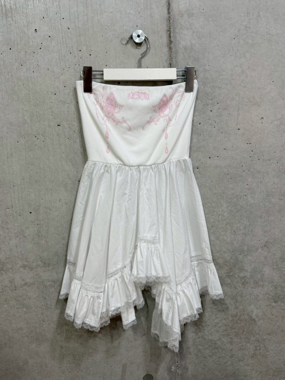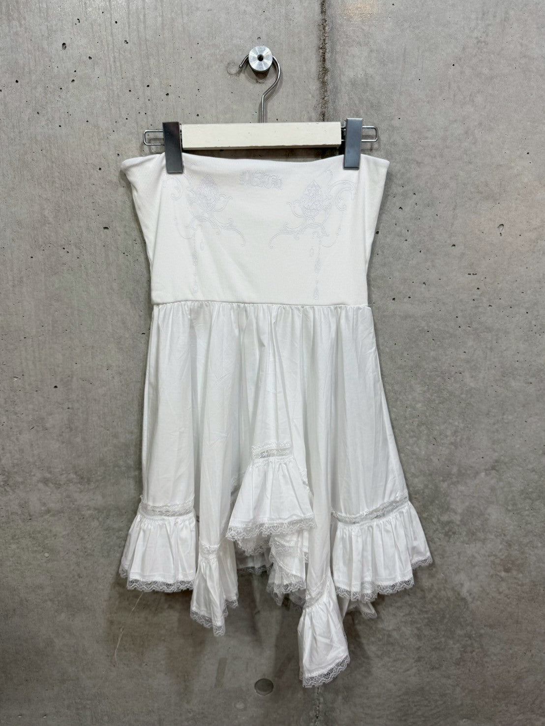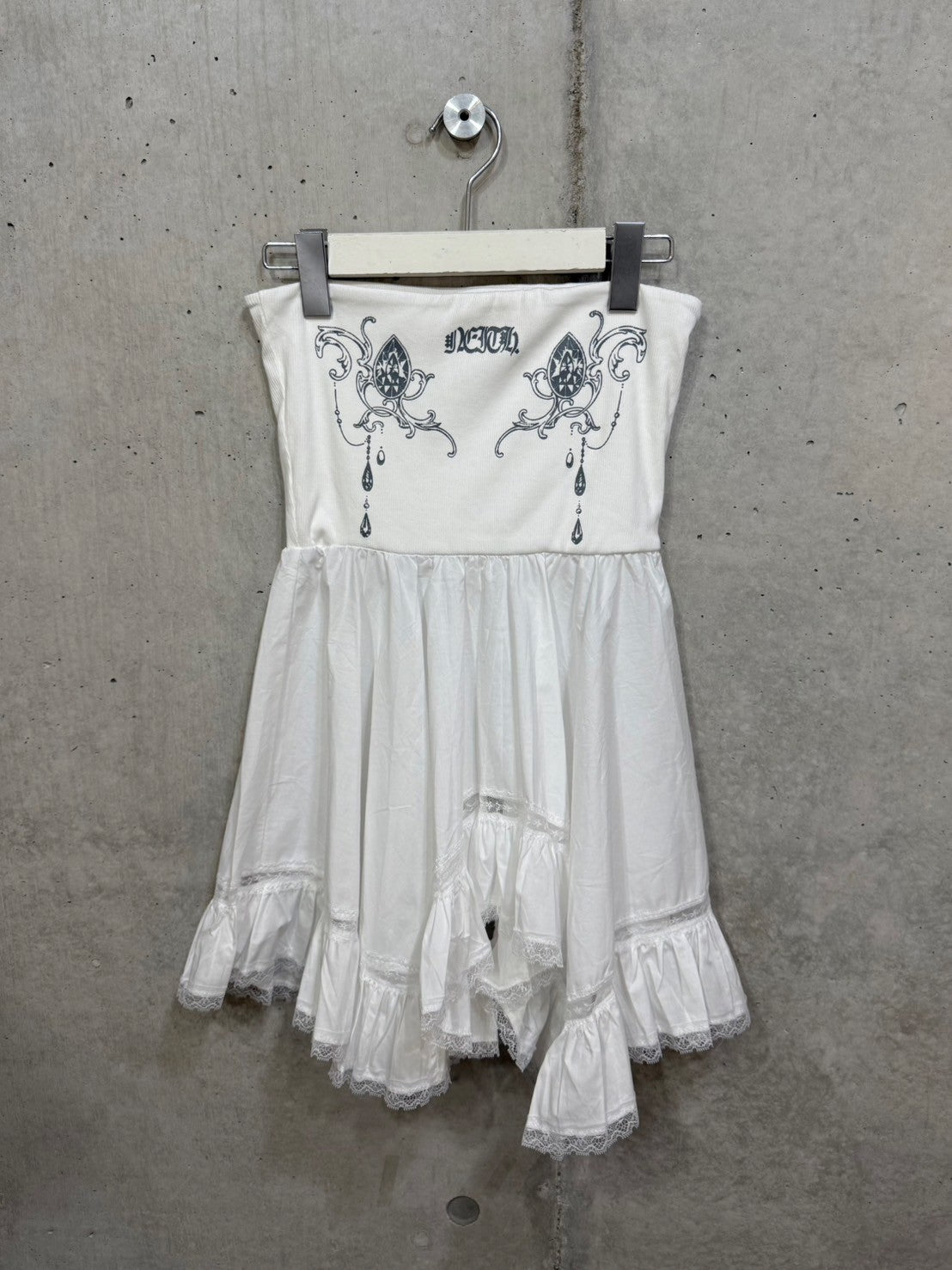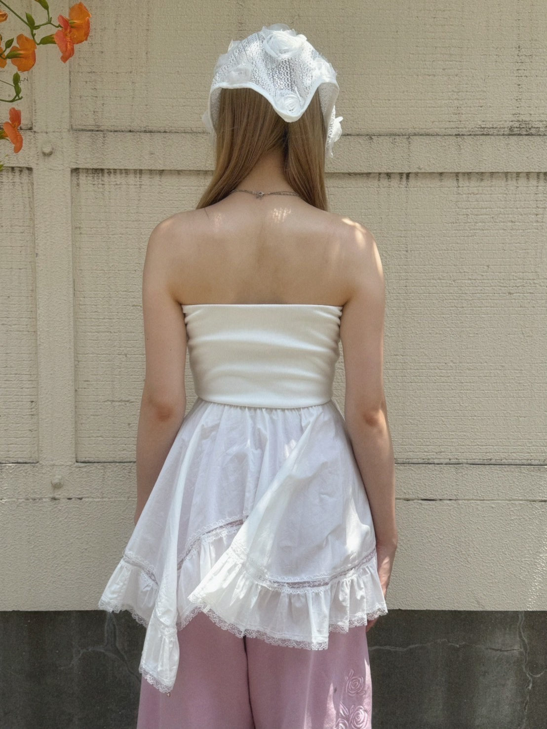 ヘルシーな着こなしで一枚でさらっと着ていただくのは勿論、レイヤードスタイルも楽しみやすいパッド無しタイプ。フィッシュテールのアシンメトリーデザインとneith.オリジナルプリントのバランス感が存在感を放ちます。ベースのキャミソールはストライプブルーと無地ホワイトの2色展開、プリント色はそれぞれぴったりの色をカスタムしました。