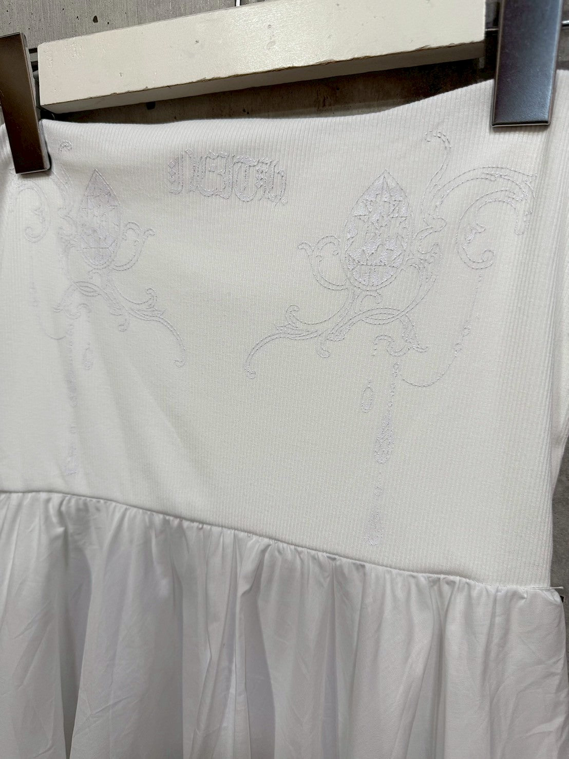 着心地のいいリブ素材に布帛を合わせたベアチュニック。neith.のオリジナルグラフィックを一点ずつ手作業でシルクスクリーンプリントをしました。