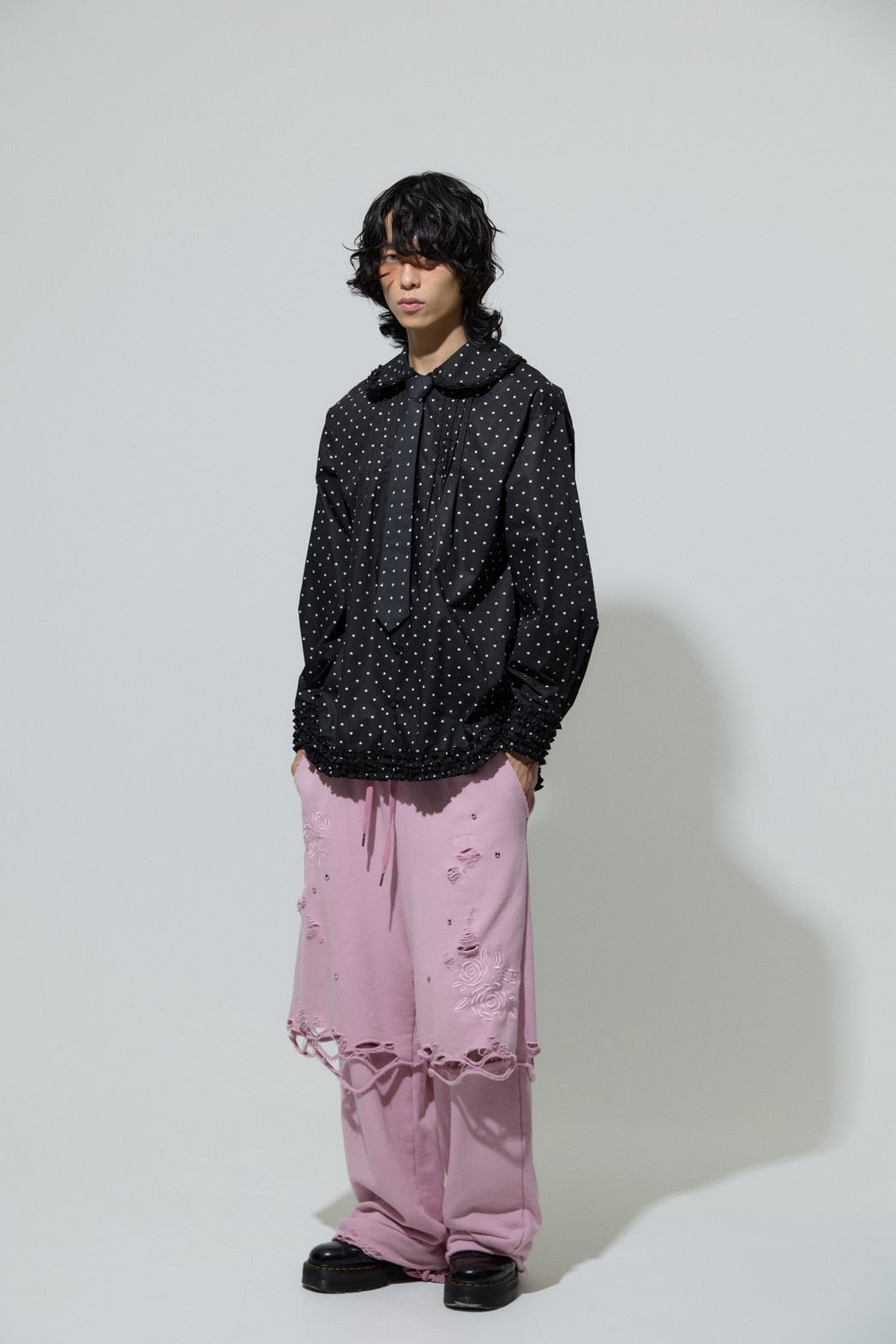 かっちりとしたToo Big Stripe JacketやLace Tied Shirtsなどと合わせたギャップのあるスタイリングもおすすめです。