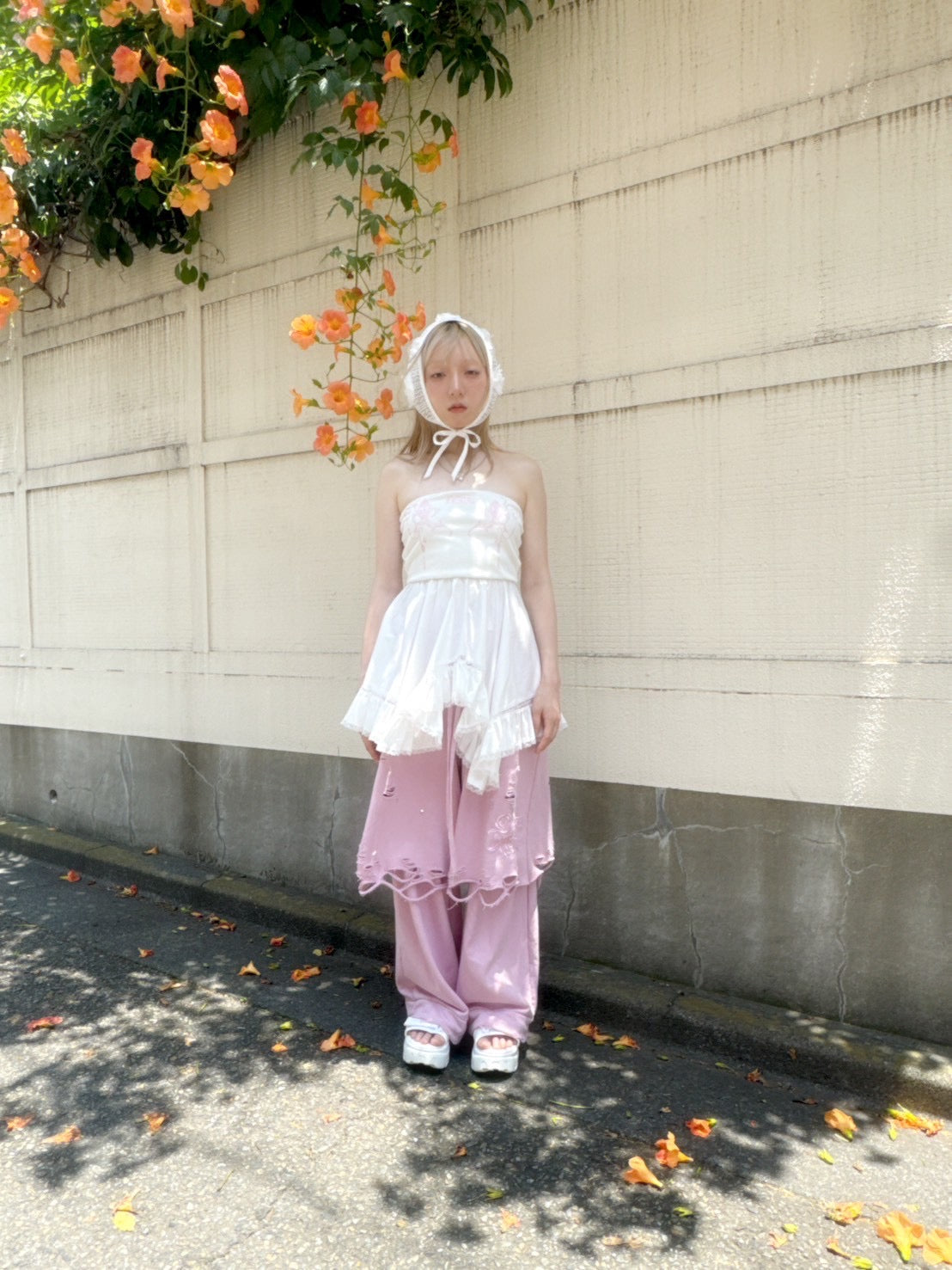 同素材のRose Crush Hoodieと合わせた最上級コーデはインパクト大。バッグやシューズをリッチなイメージでスタイリングしてみてください。