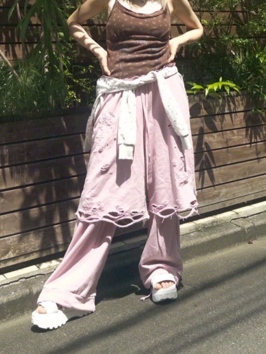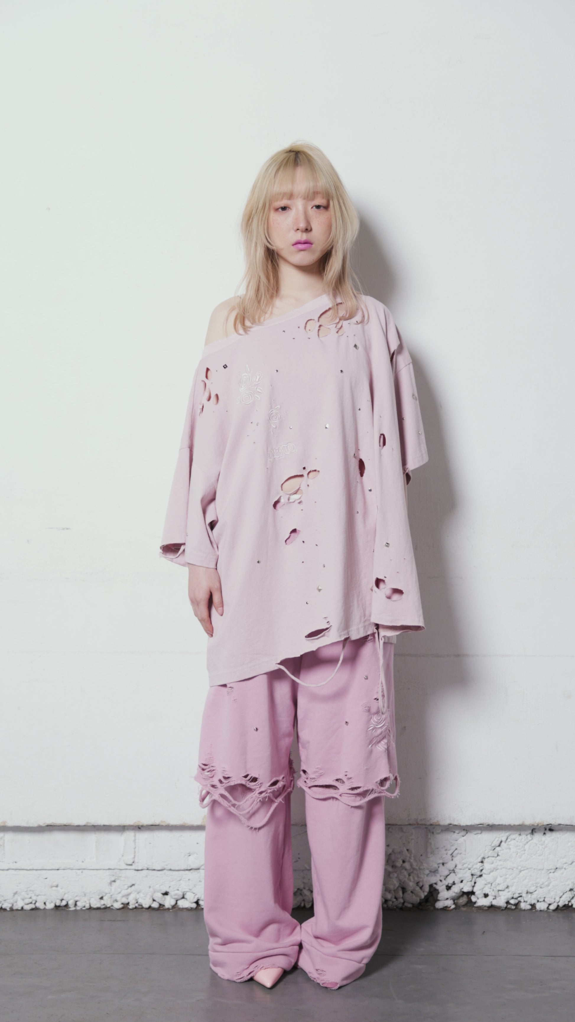 着心地の良いスウェット素材に大胆なダメージ加工を施しました。
