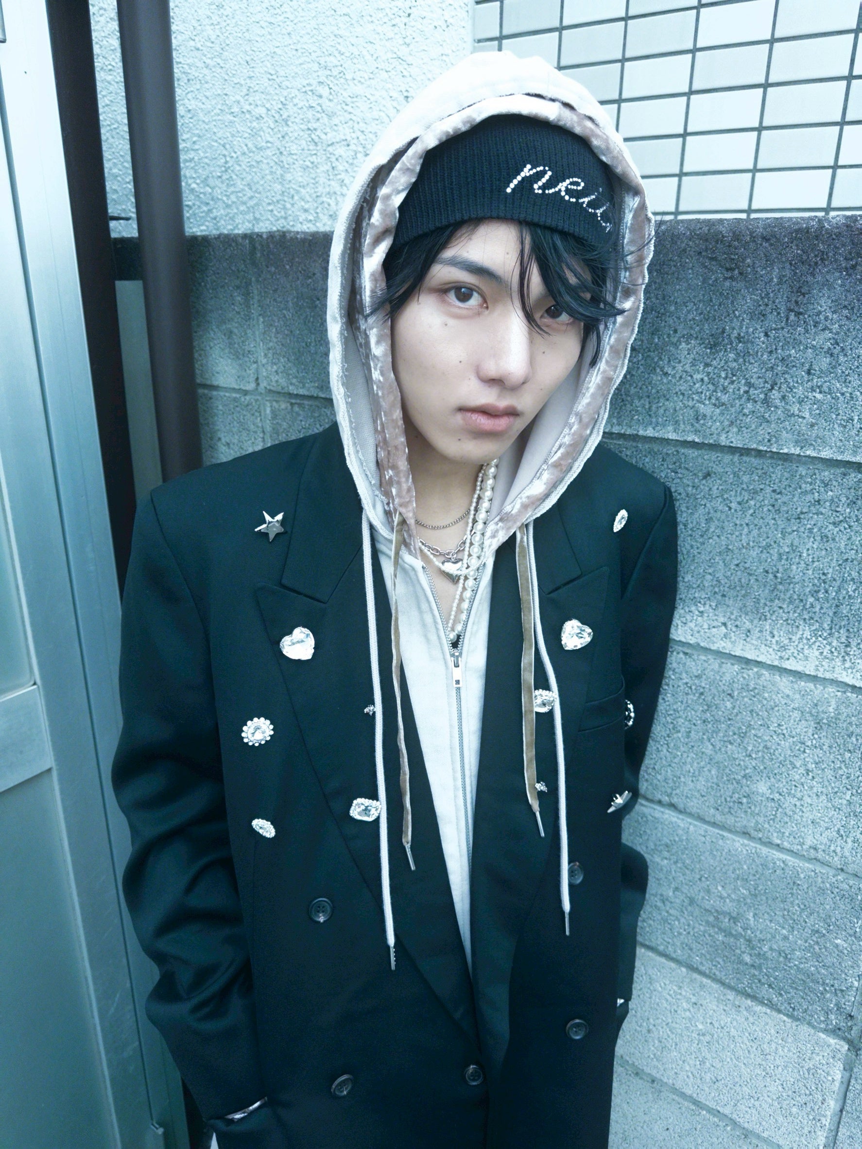 ・フードのドローストリングを長めに設定。メタリックのエンド金具がキラキラと揺れスタイリングのアクセントに。