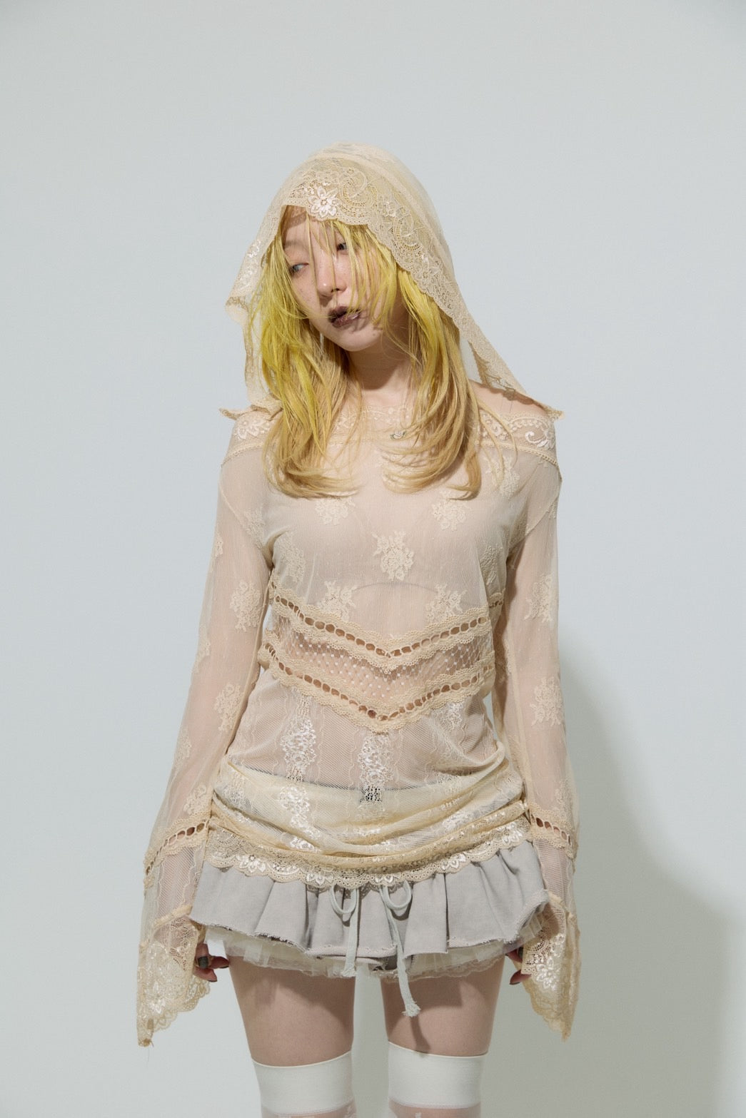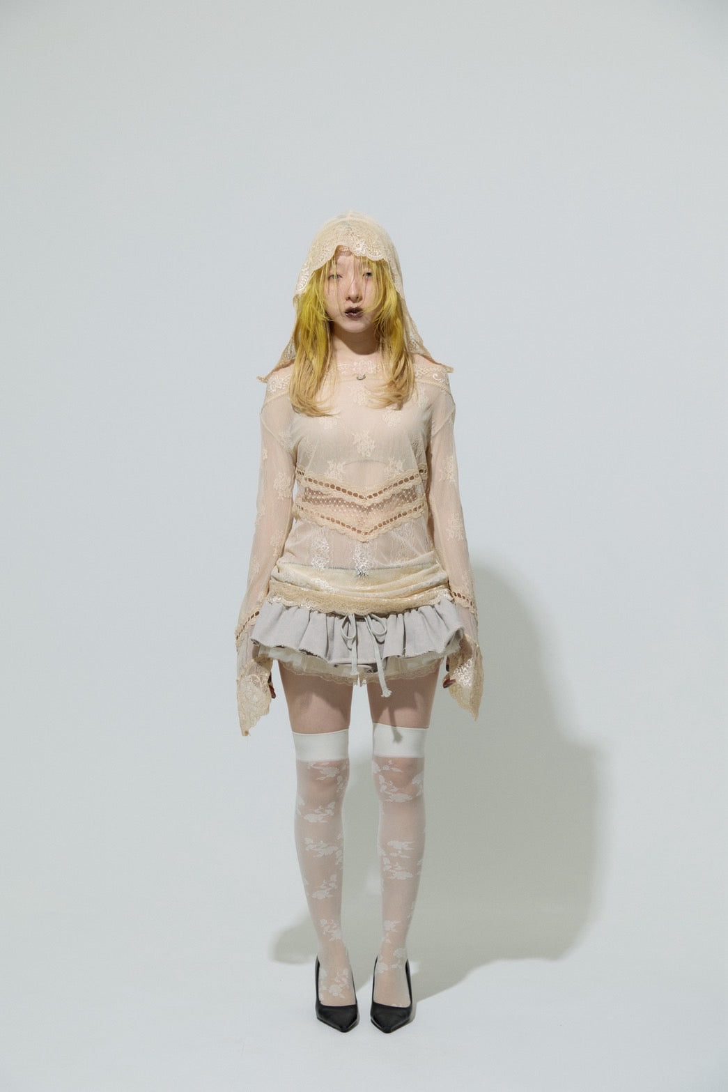・ヴィンテージ加工のを施したグランジ感のある裏毛にチュールの甘さが良いギャップ