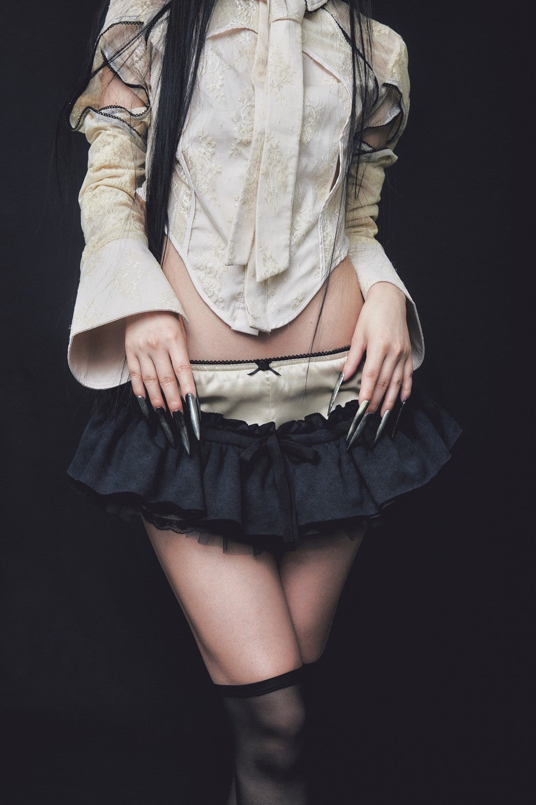 ・ランジェリー風のブルマにスウェットのチュチュがついたセットアイテム。ボタンでドッキングしており取り外し可能。