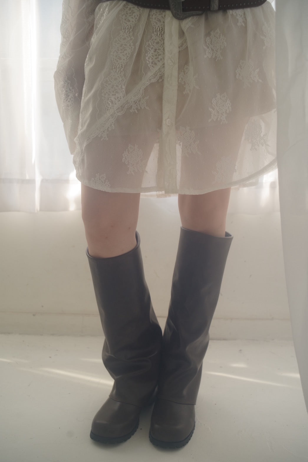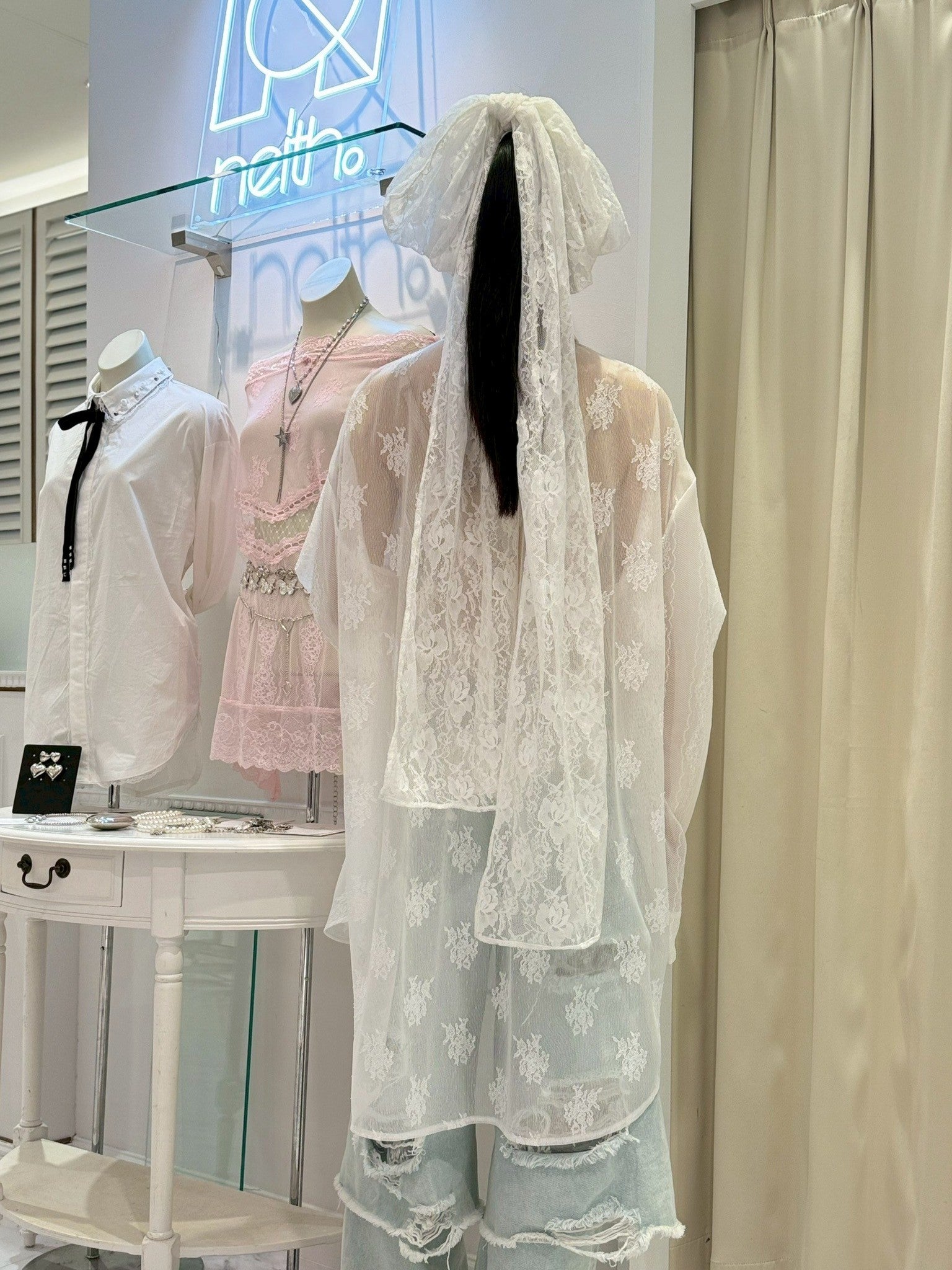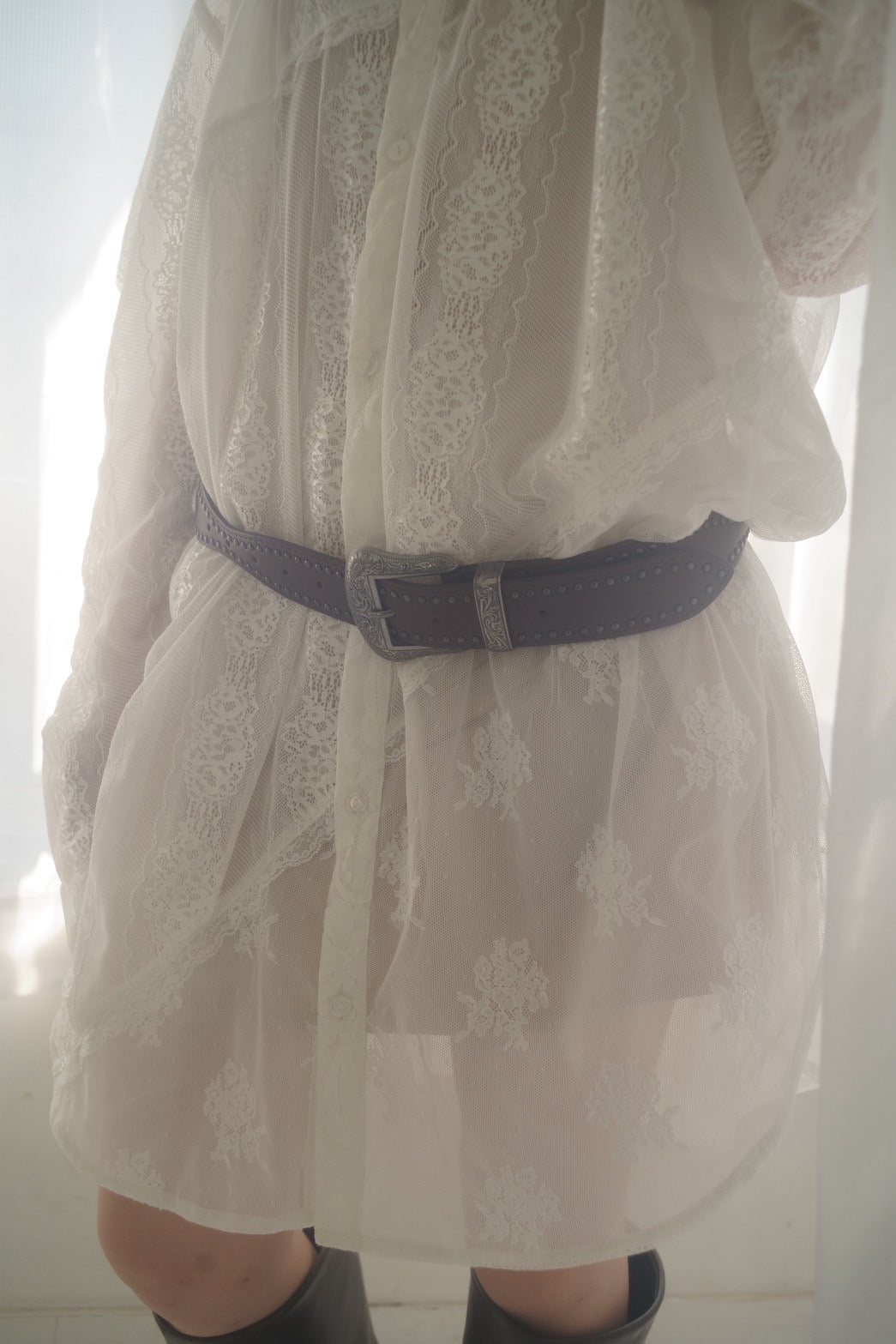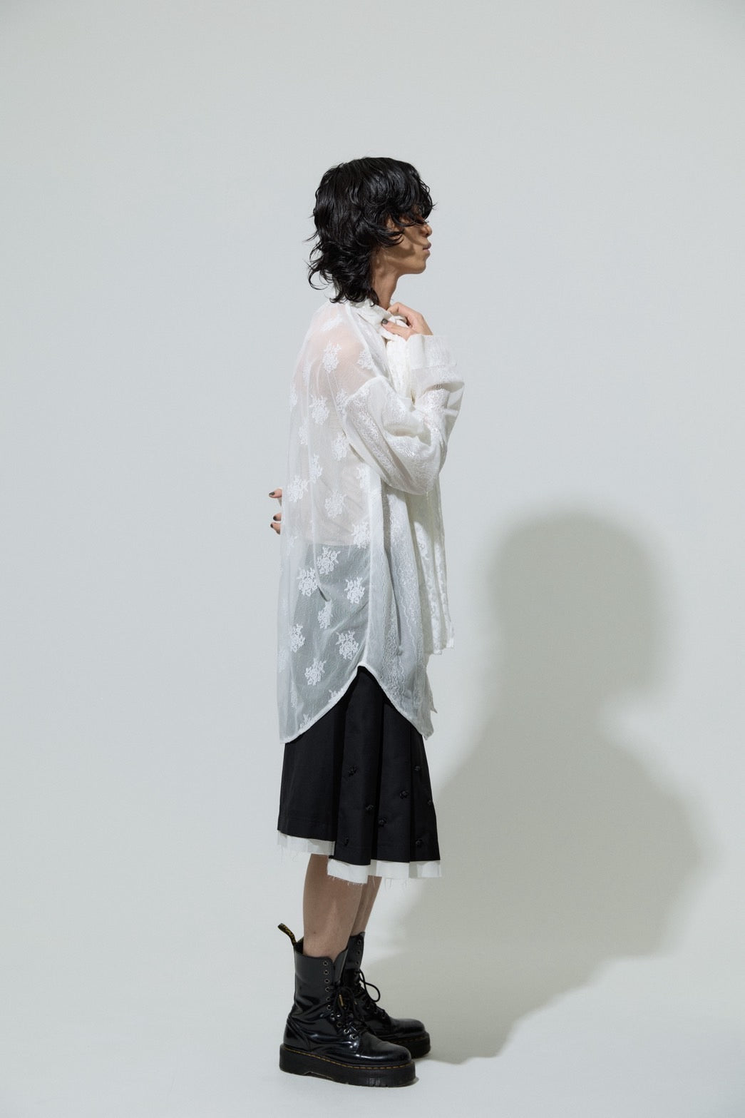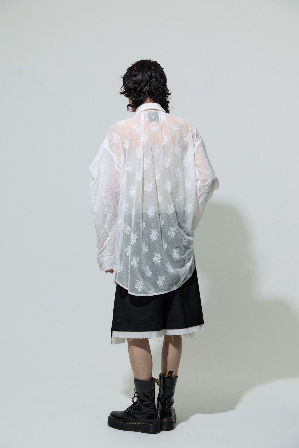人気のシャツドレスを大胆なシルエットと大きなリボンはそのままに、今シーズンらしくレースにバージョンアップ。レースとレースの切り替え部分にはレースリボンを挟み込み、丁寧に作りこまれています。