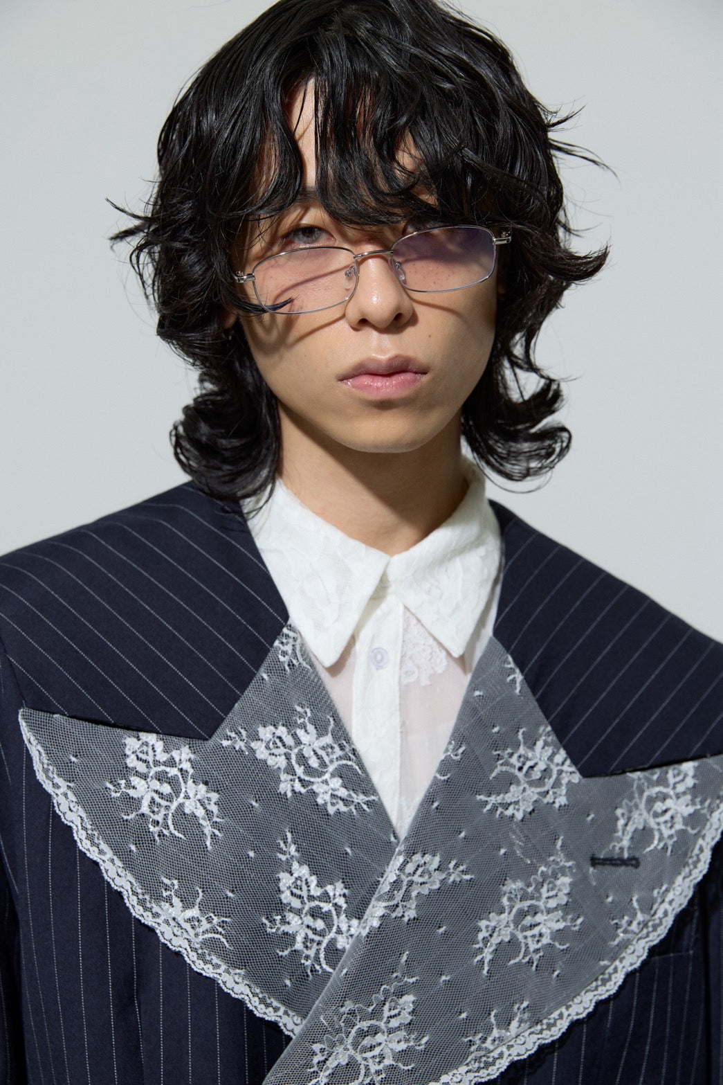 トレンドのレースをたっぷりと3種類使用しています。ユニークなシルエットをキープするため、前身ごろと袖には裏にオーガンジーを重ねました。