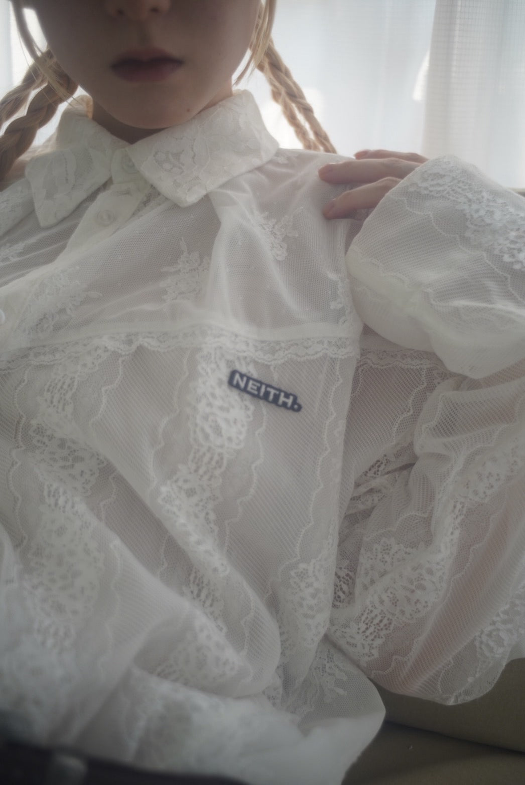 他にはない大きなリボンで、着るだけで存在感抜群。リボン無しでさらりと着こなしても美しいシルエットが光ります。胸に配したneith.のワッペンがスポーティーなテイストを加えるので、レースなのにヘルシーに着用出来ます。テイストの幅も広げ、コーディネートの幅が一気に広がります。