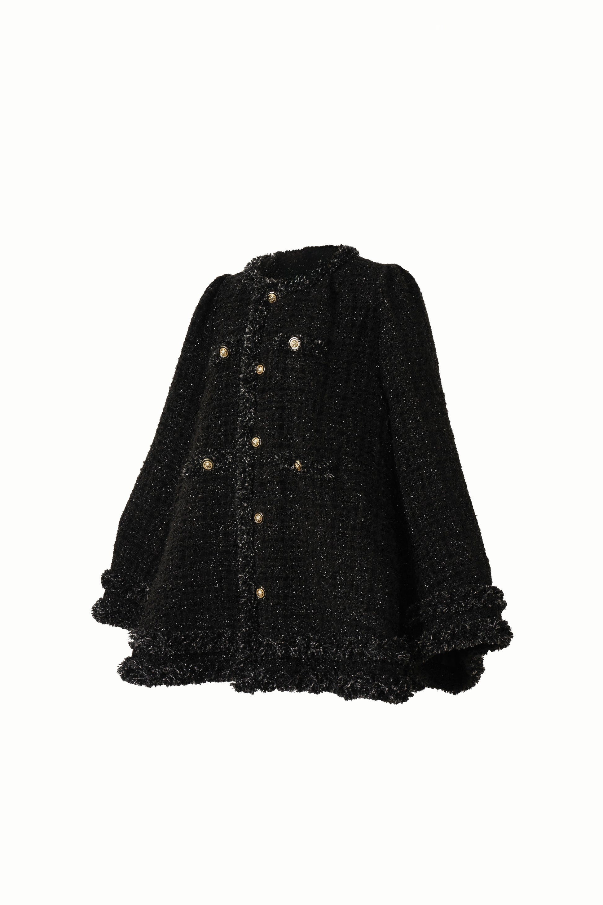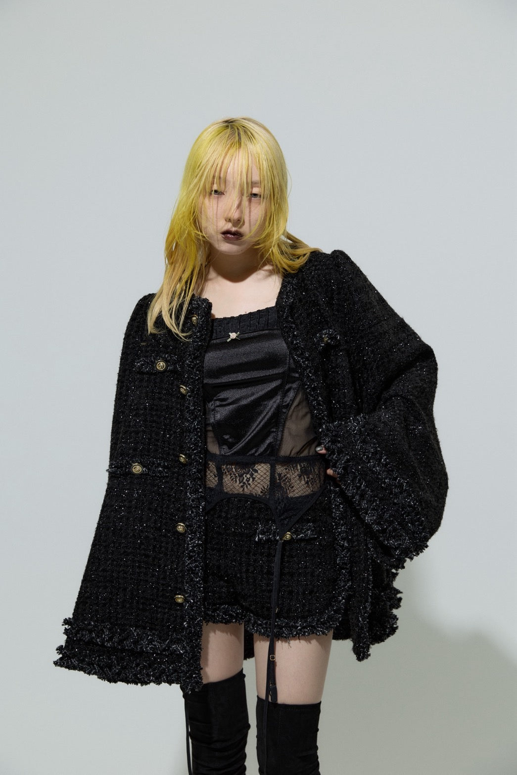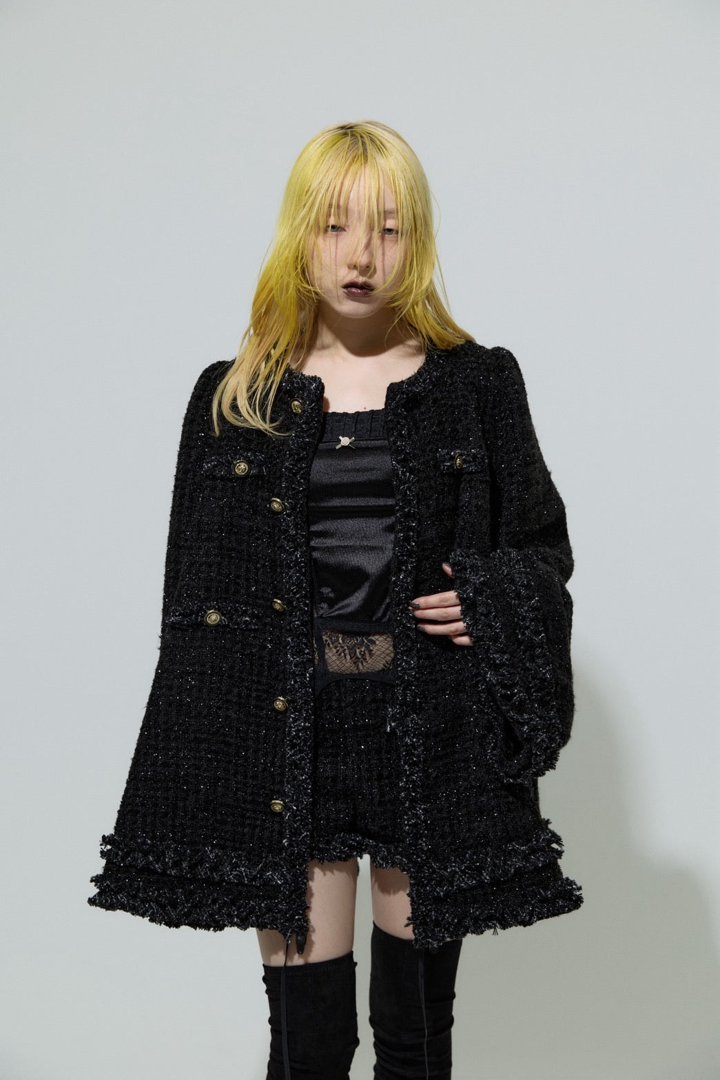 ・キラキラと光るラメ糸がリッチなツイード生地を2種類使用。同色使いがさり気ないアクセント。