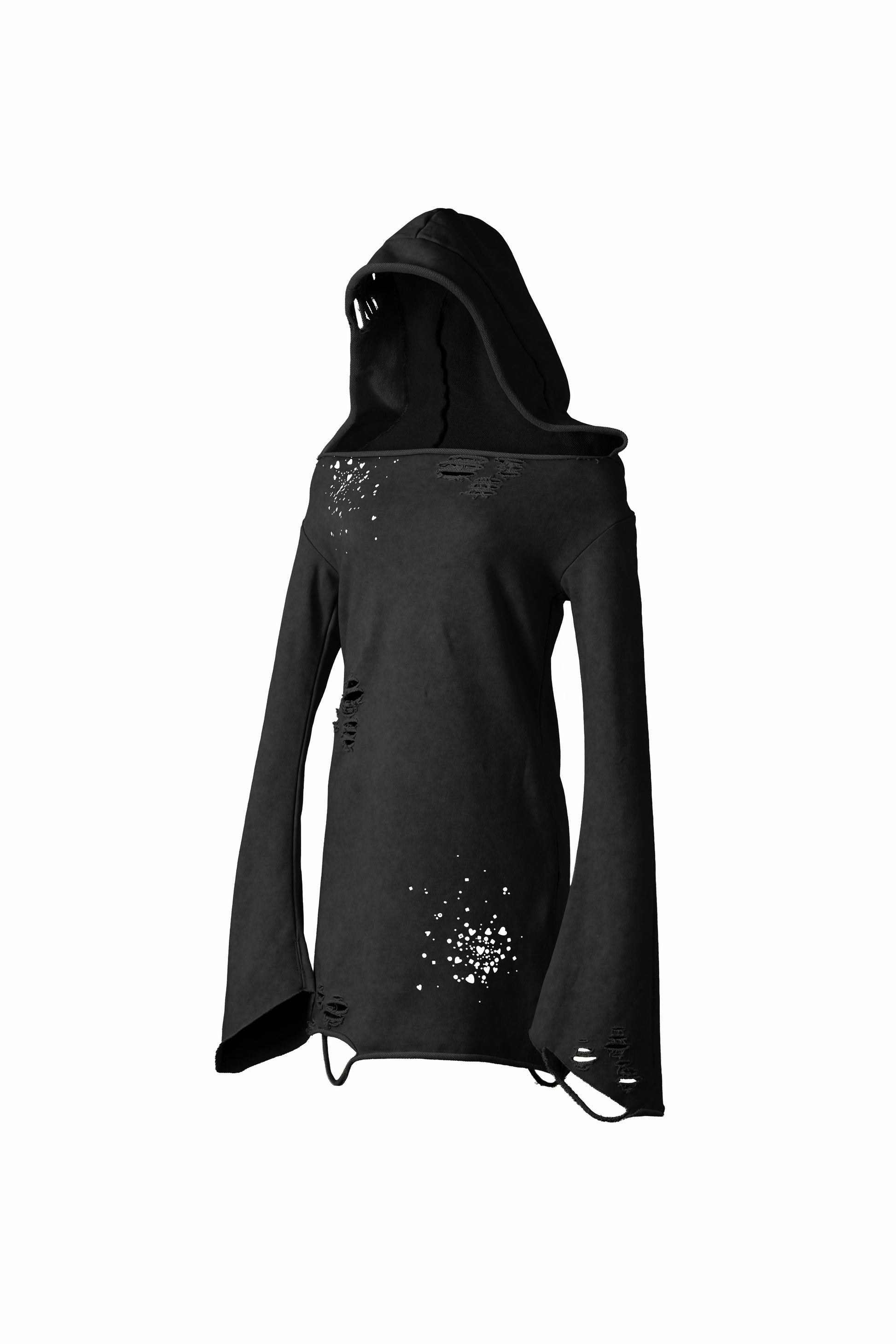 ・重厚感のあるオールブラックに繊細に施されたメタリックのホットフィックス加工が煌めきます