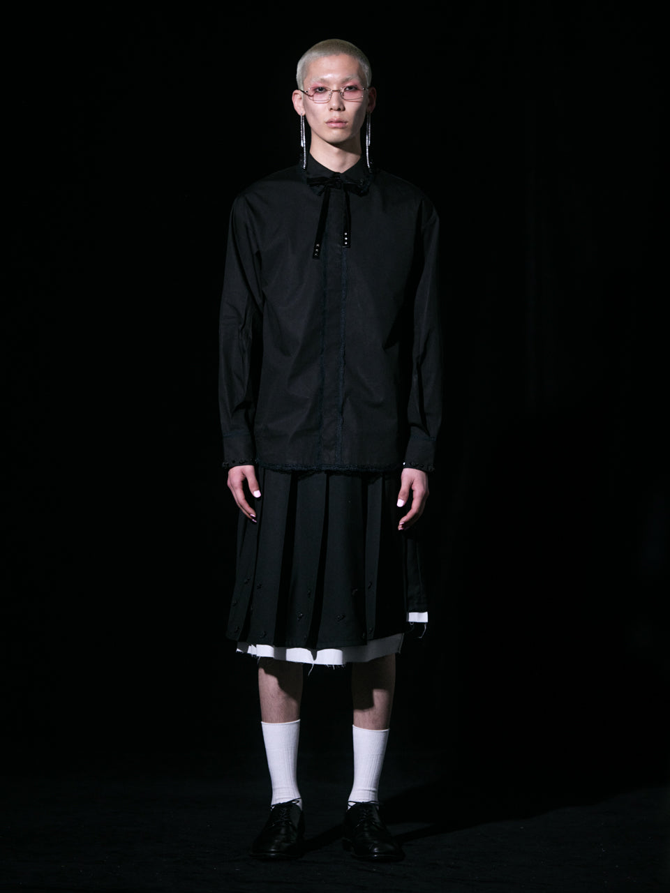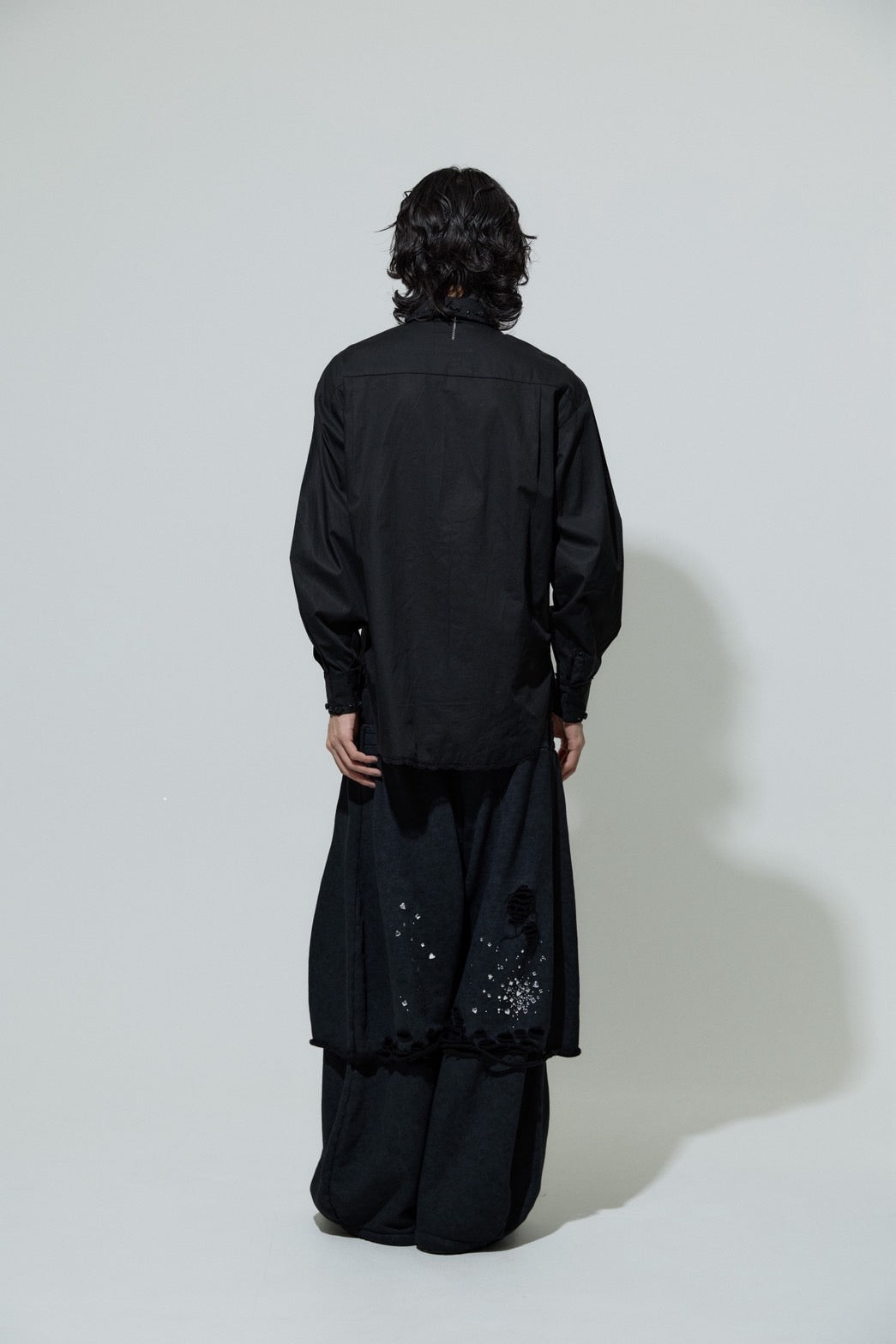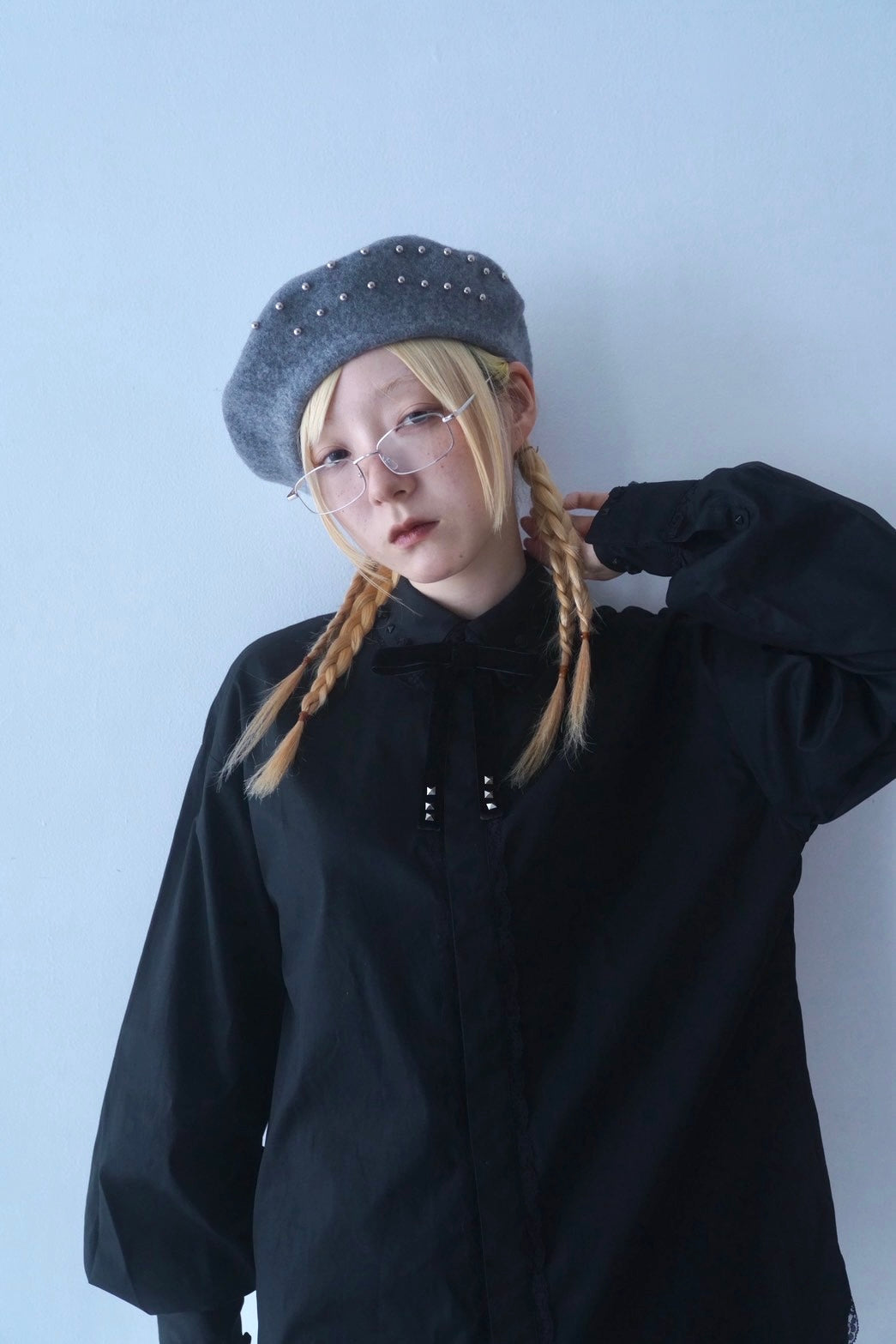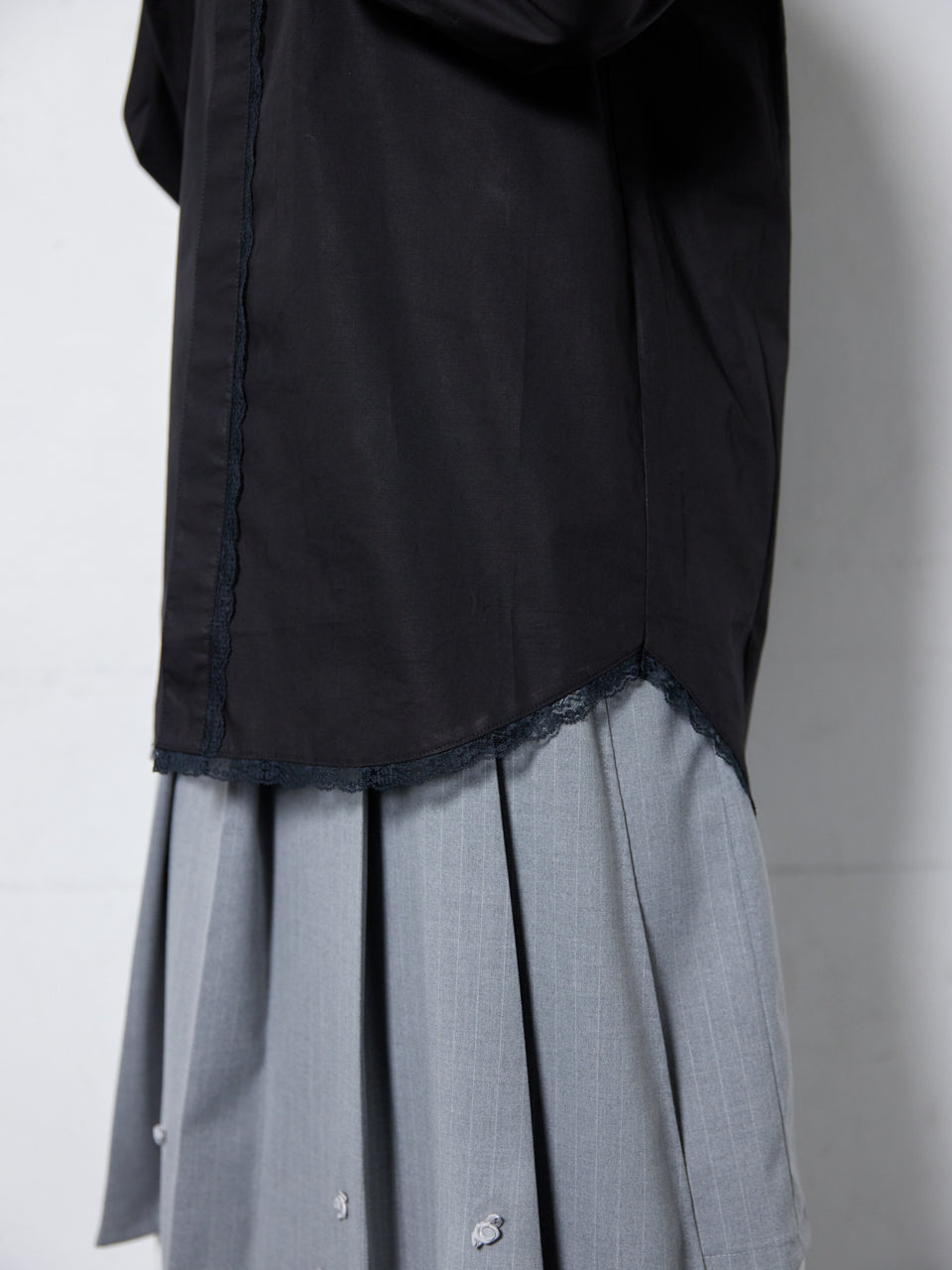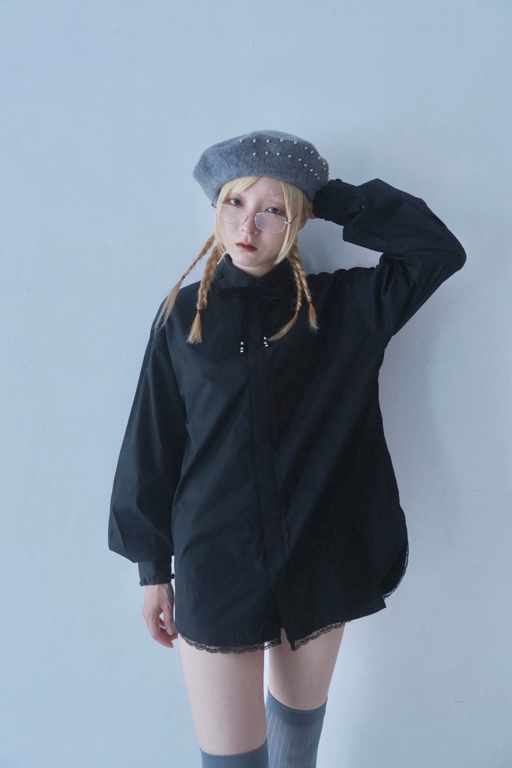 Rose Pleats Skirt Pants、Stripe Lace Trousers、Too Big Stripe Jacketなどと合わせてマニッシュなスタイリングにぴったりです。また襟元のデザイン性を生かして、Tシャツやニットなどとレイヤードするのも◎。Rose Studs T-shirtsとスタイリングしていますので写真を参考にしてください。