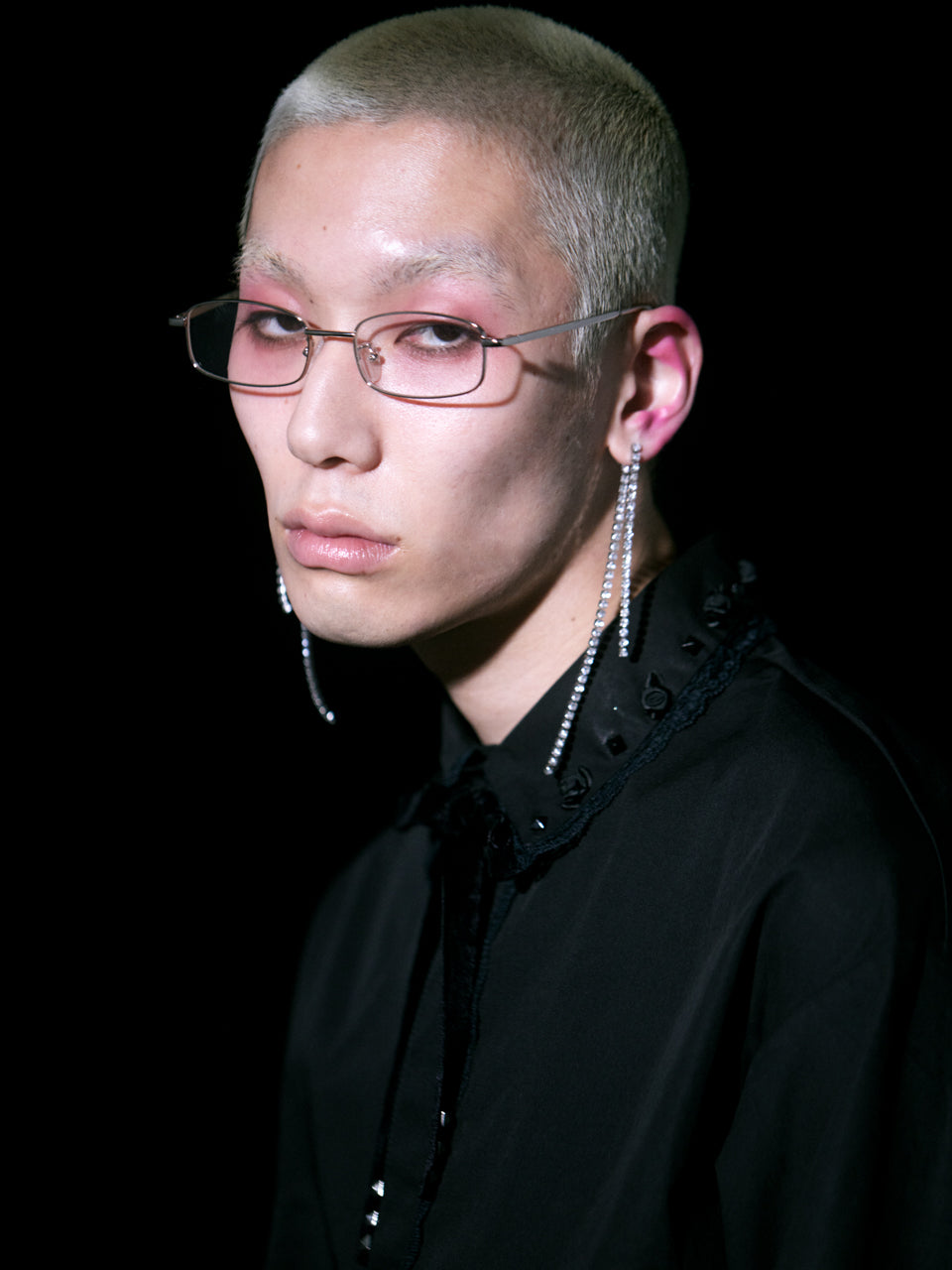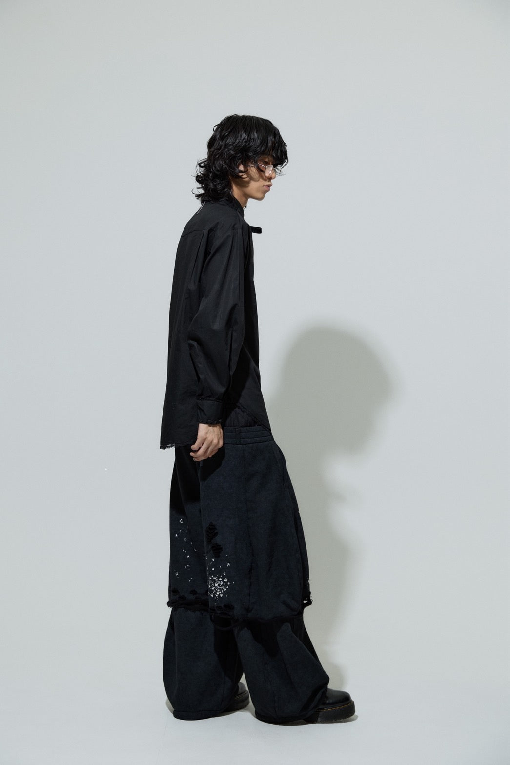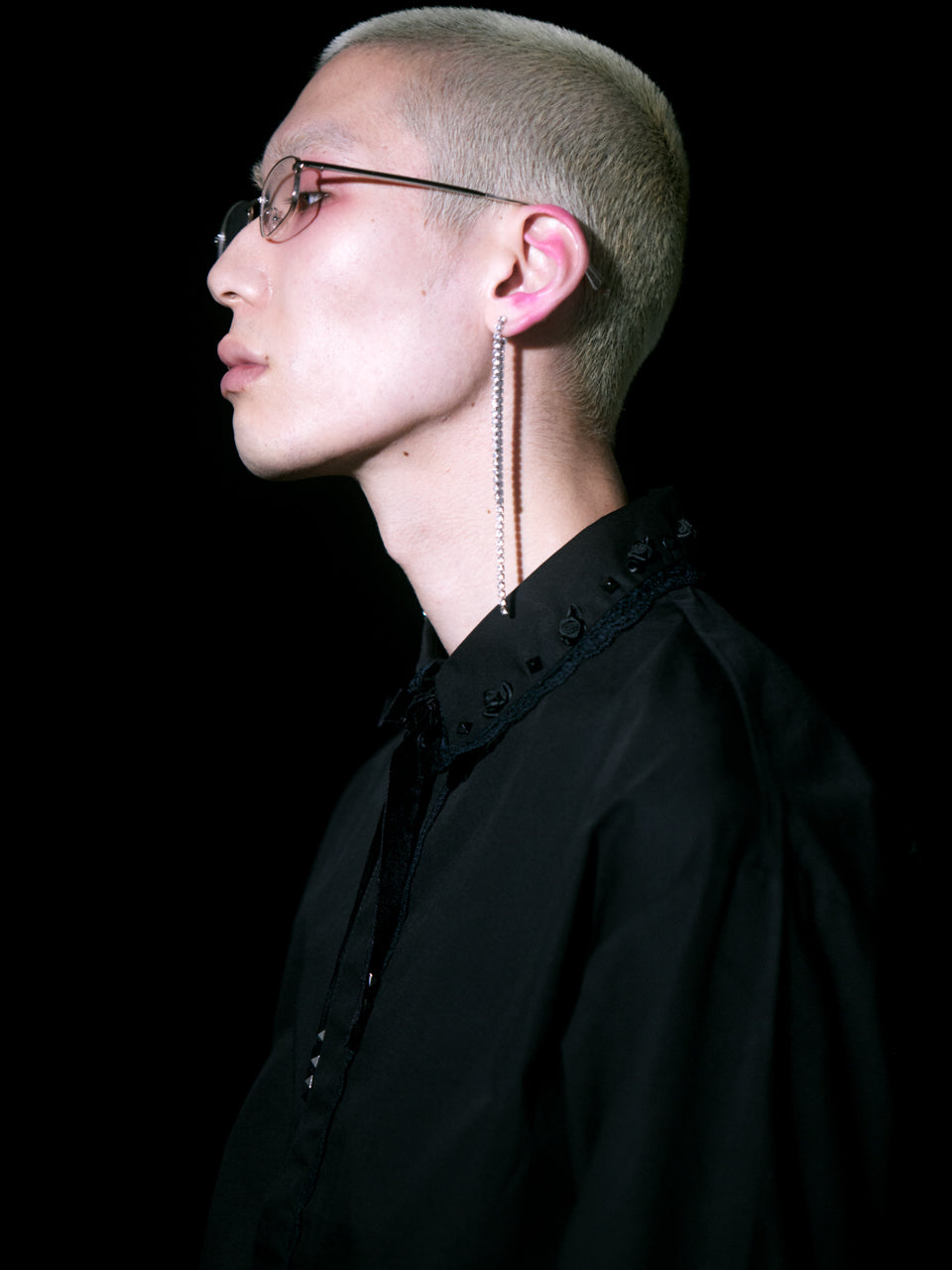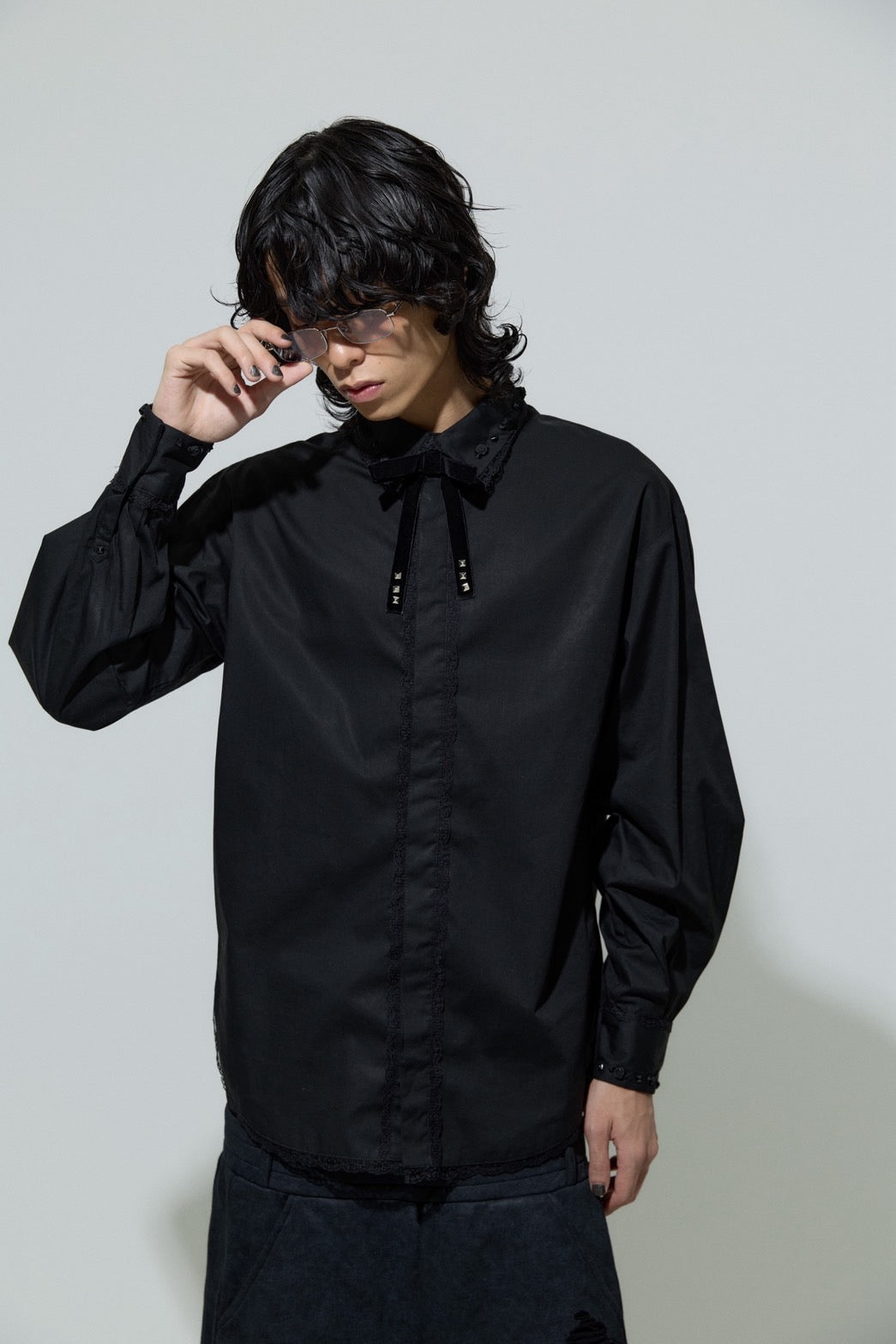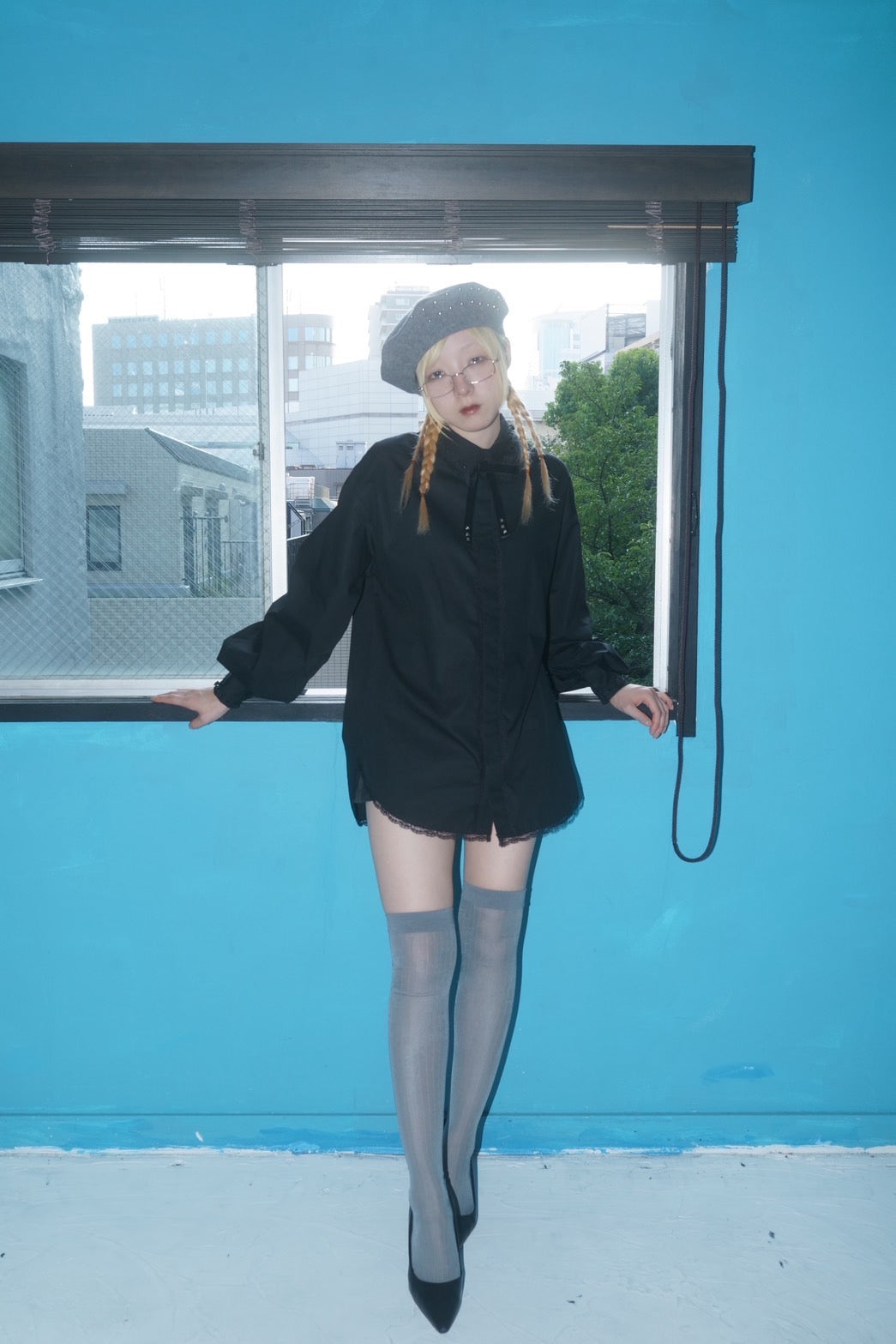 Rose Pleats Skirt Pants、Stripe Lace Trousers、Too Big Stripe Jacketなどと合わせてマニッシュなスタイリングにぴったりです。また襟元のデザイン性を生かして、Tシャツやニットなどとレイヤードするのも◎。Rose Studs T-shirtsとスタイリングしていますので写真を参考にしてください。
