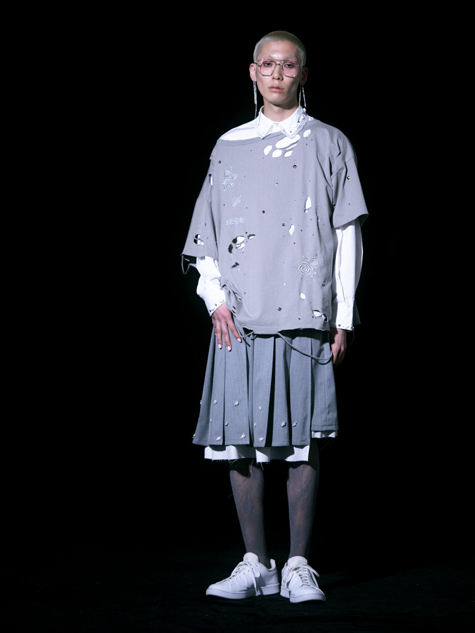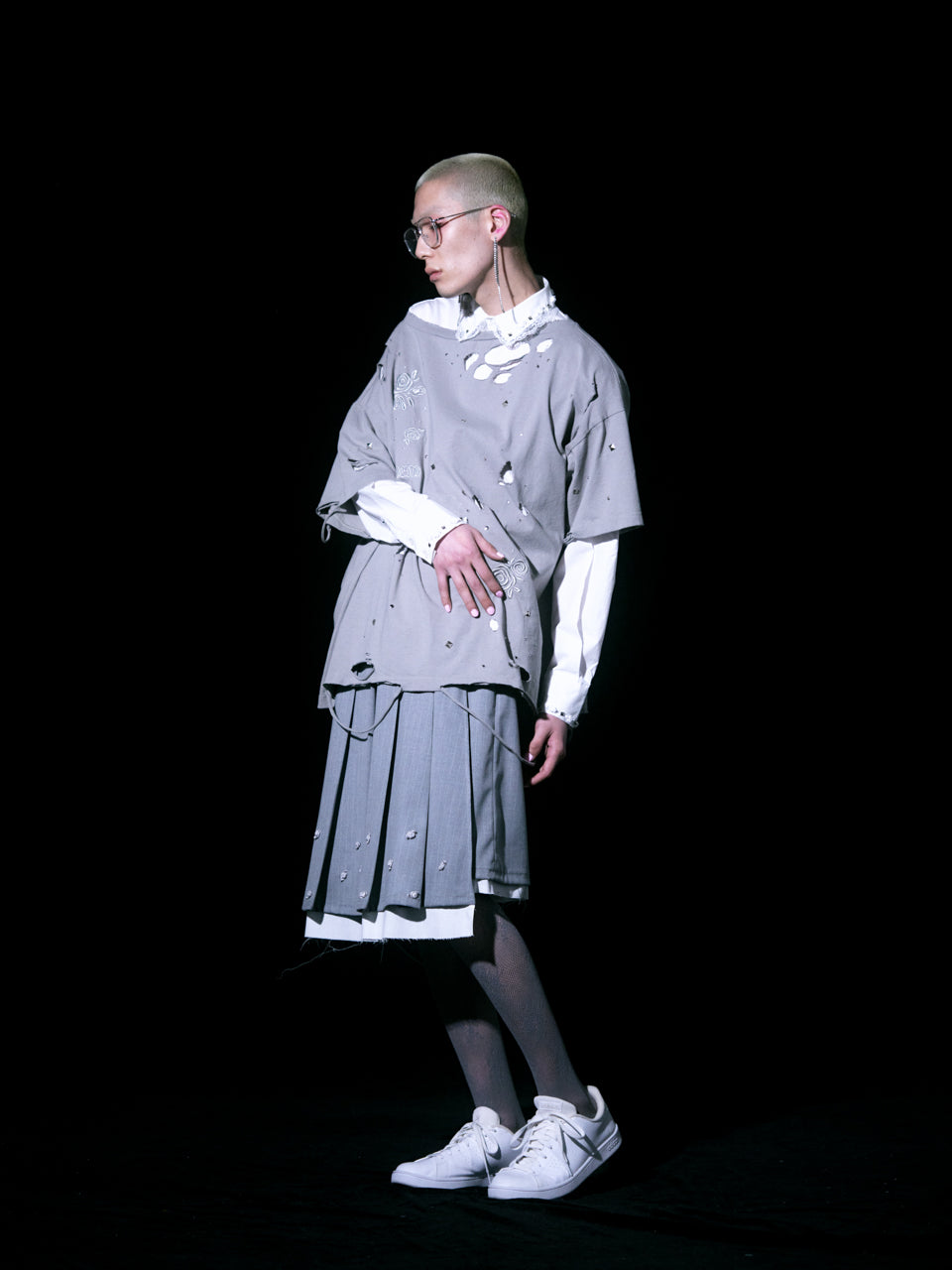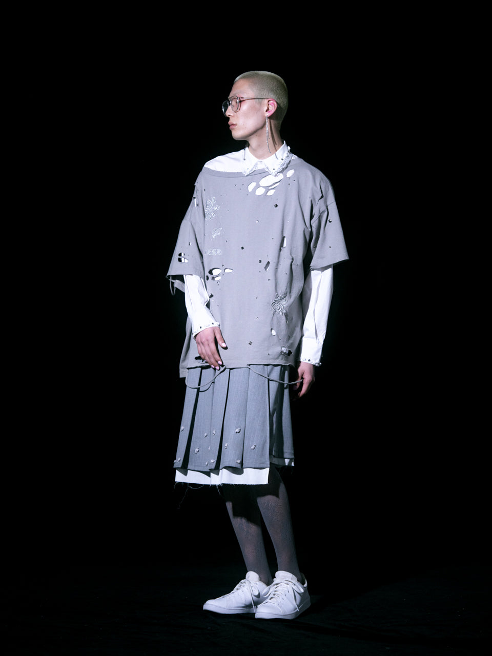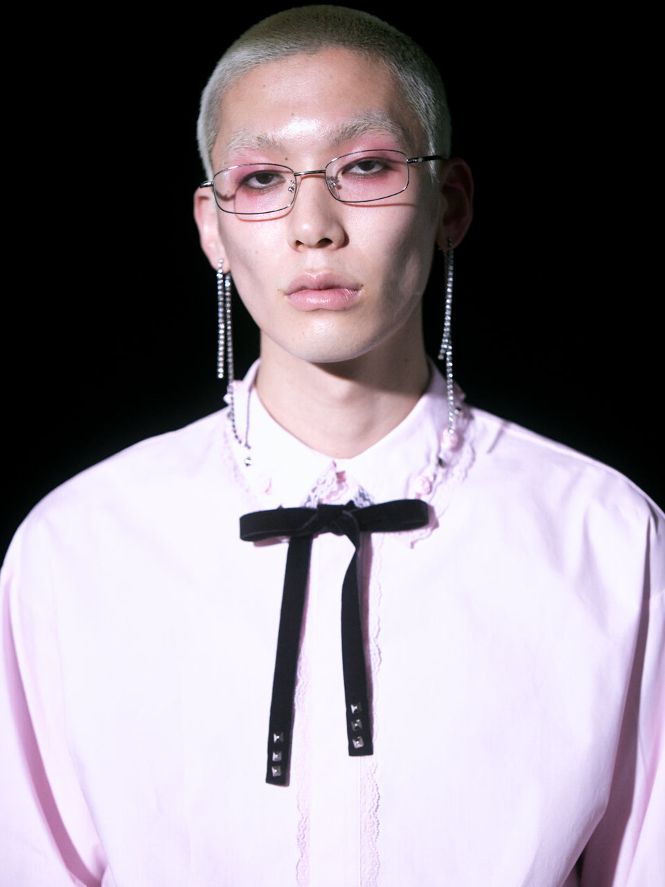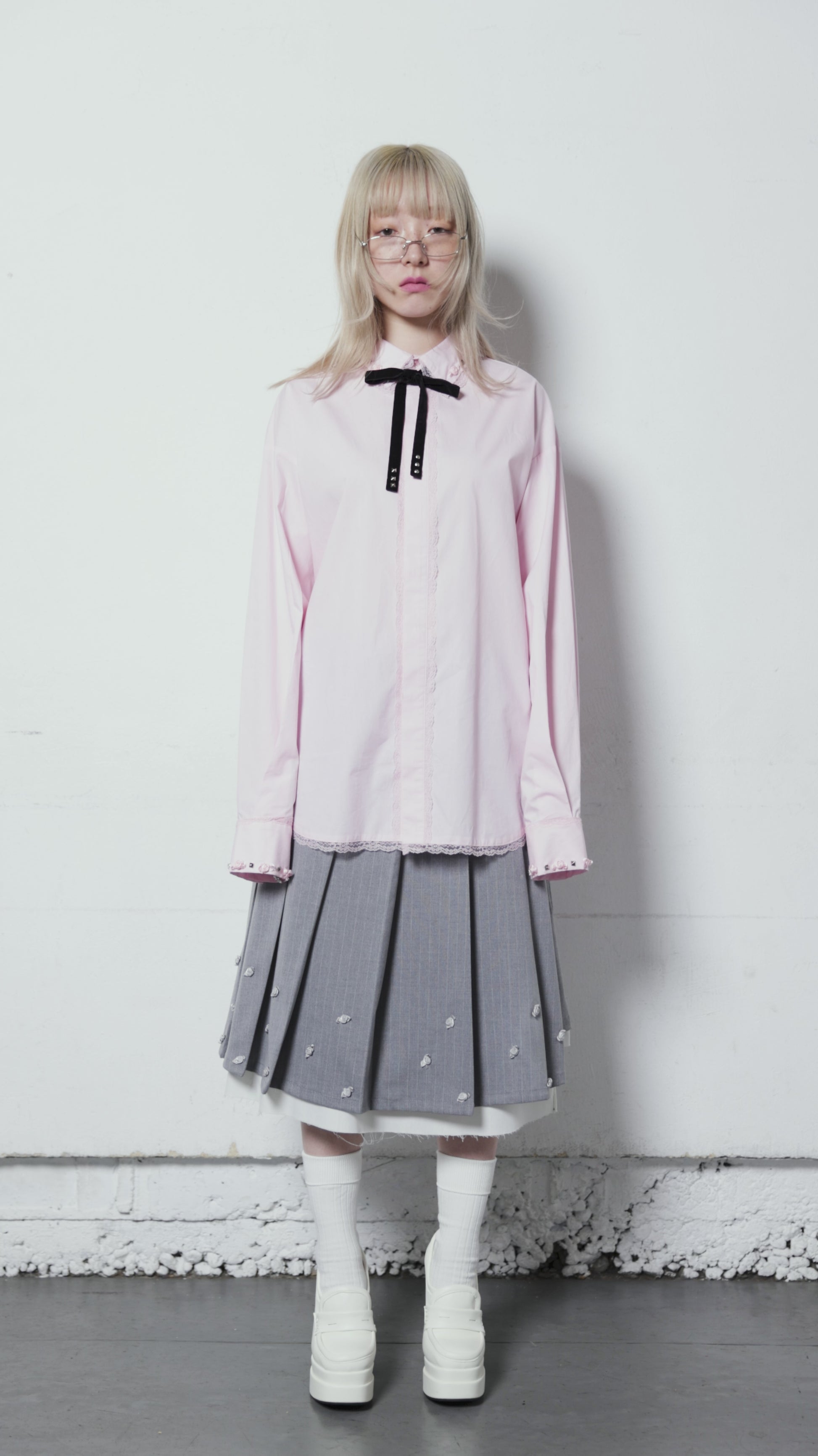 Rose Pleats Skirt Pants、Stripe Lace Trousers、Too Big Stripe Jacketなどと合わせてマニッシュなスタイリングにぴったりです。また襟元のデザイン性を生かして、Tシャツやニットなどとレイヤードするのも◎。Rose Studs T-shirtsとスタイリングしていますので写真を参考にしてください。