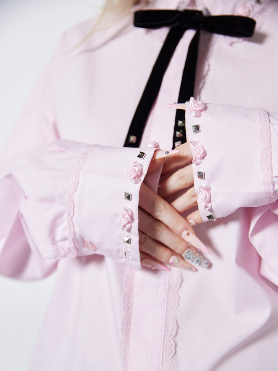 シンプルなコットンの生地にレース、リボン、バラ、スタッズ。最旬のモチーフをギュっと詰め込みました。