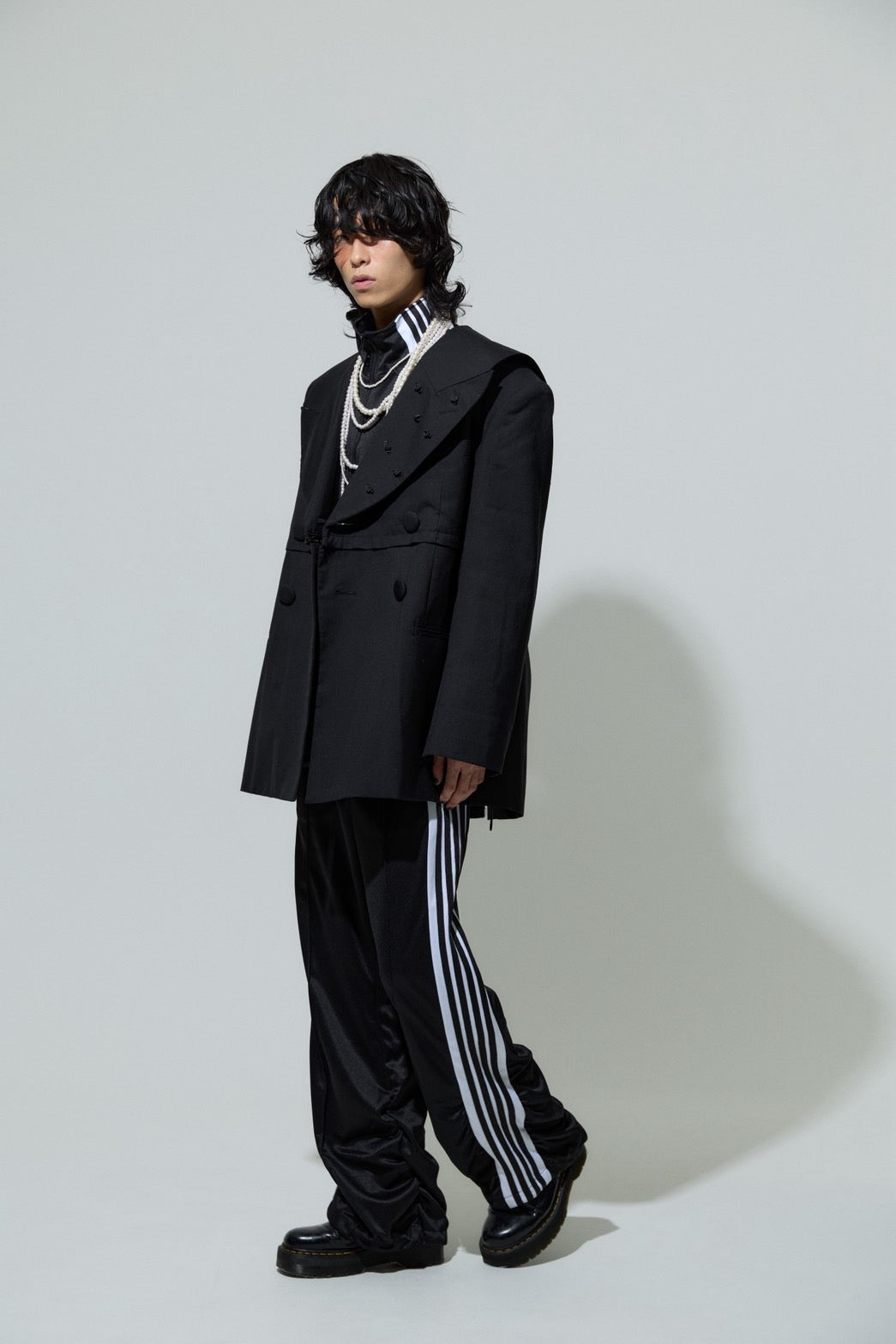 四角く角張ったショルダーシルエットを実現させるため、大きめの肩パッドを採用しています。肩パッドは取り外すことも可能です。洗濯の際には取り外し、美しいシルエットをキープしてください。