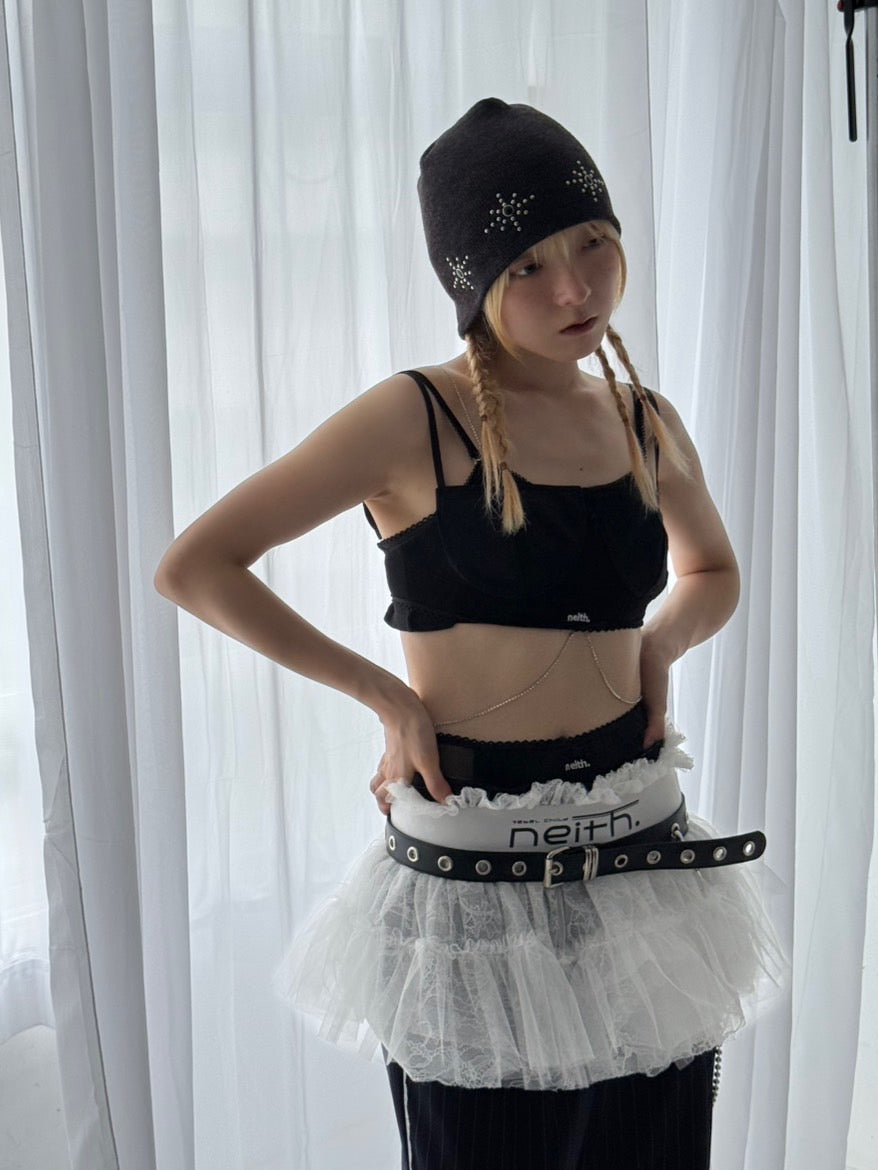 あえて辛口のデザインのボトムのウエストから覗かせたり、スポーティーなボトムとあわせる甘辛ミックスのコーディネートがイチオシ。透け感のあるスカートの中にしのばせたコーディネートや、オーバーサイズのTシャツワンピに合わせるのも◎。ローライズのトレンドムードが押し寄せる今、いち早く手に入れたいアイテムです。