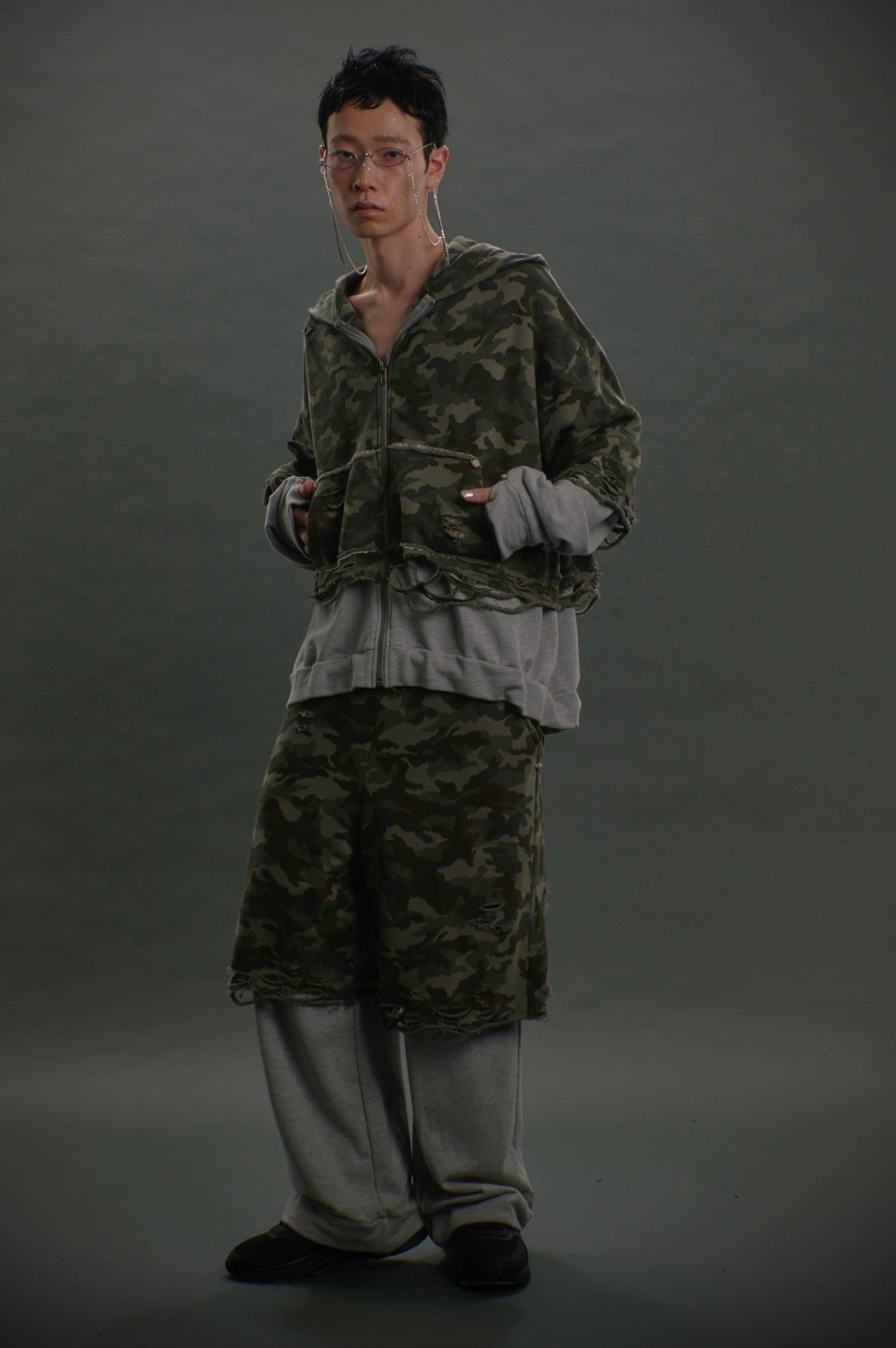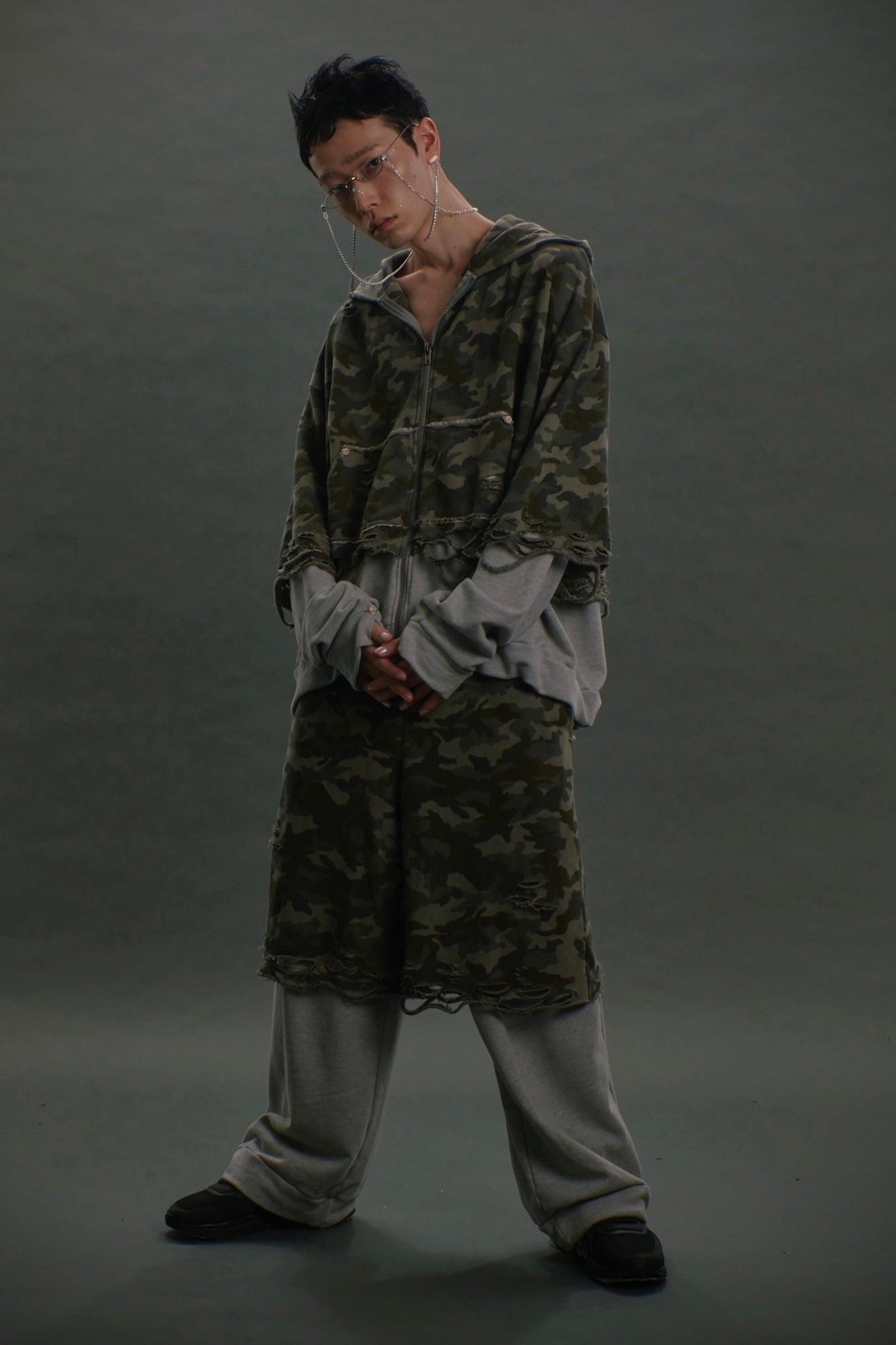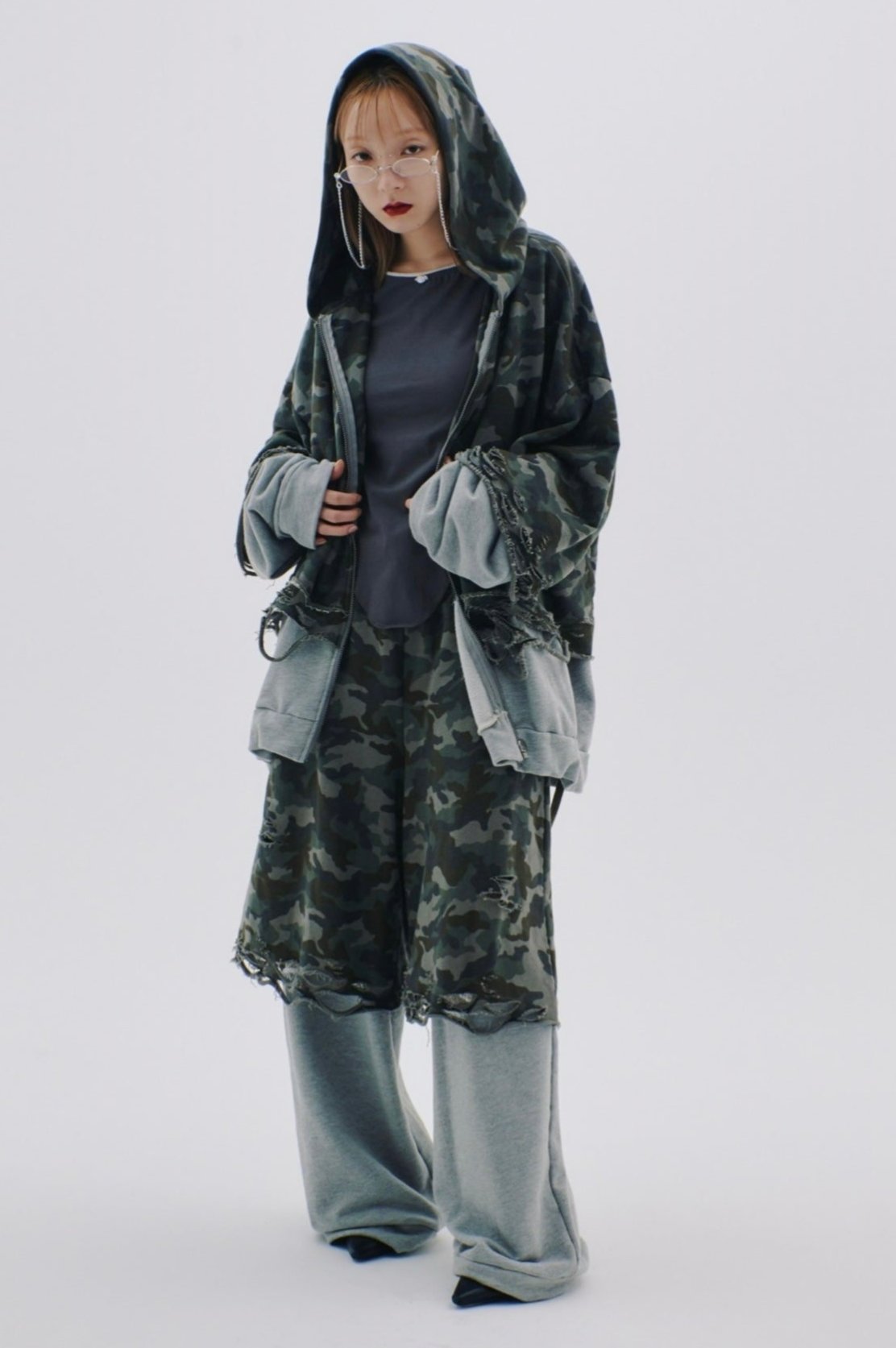 着心地の良いスウェット素材に大胆なダメージ加工を施しました。