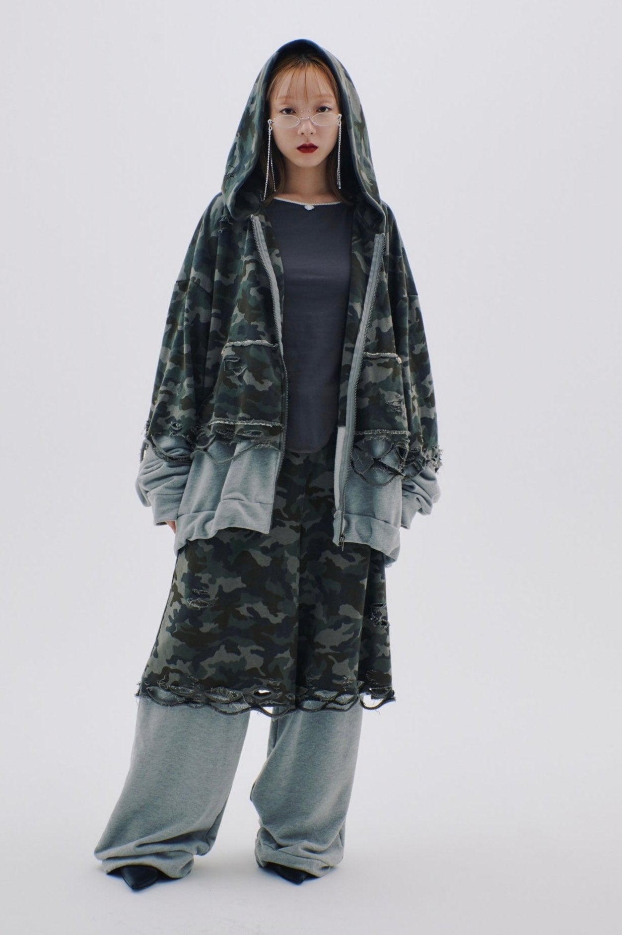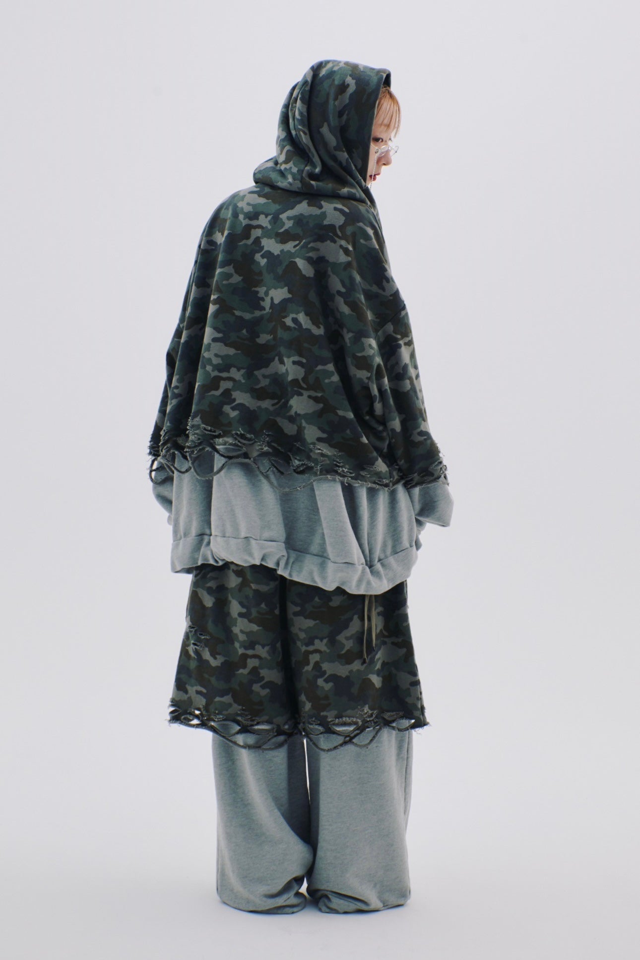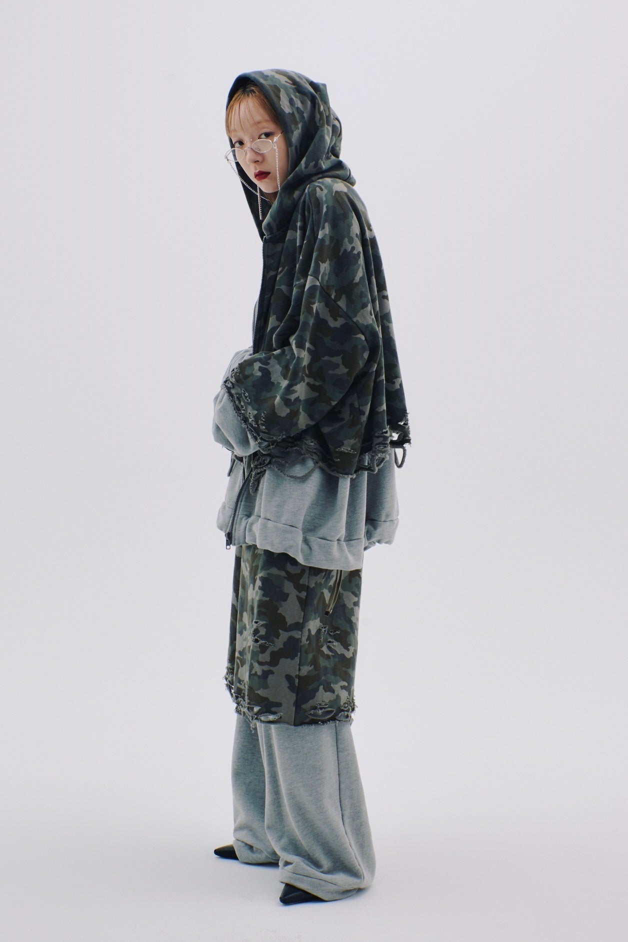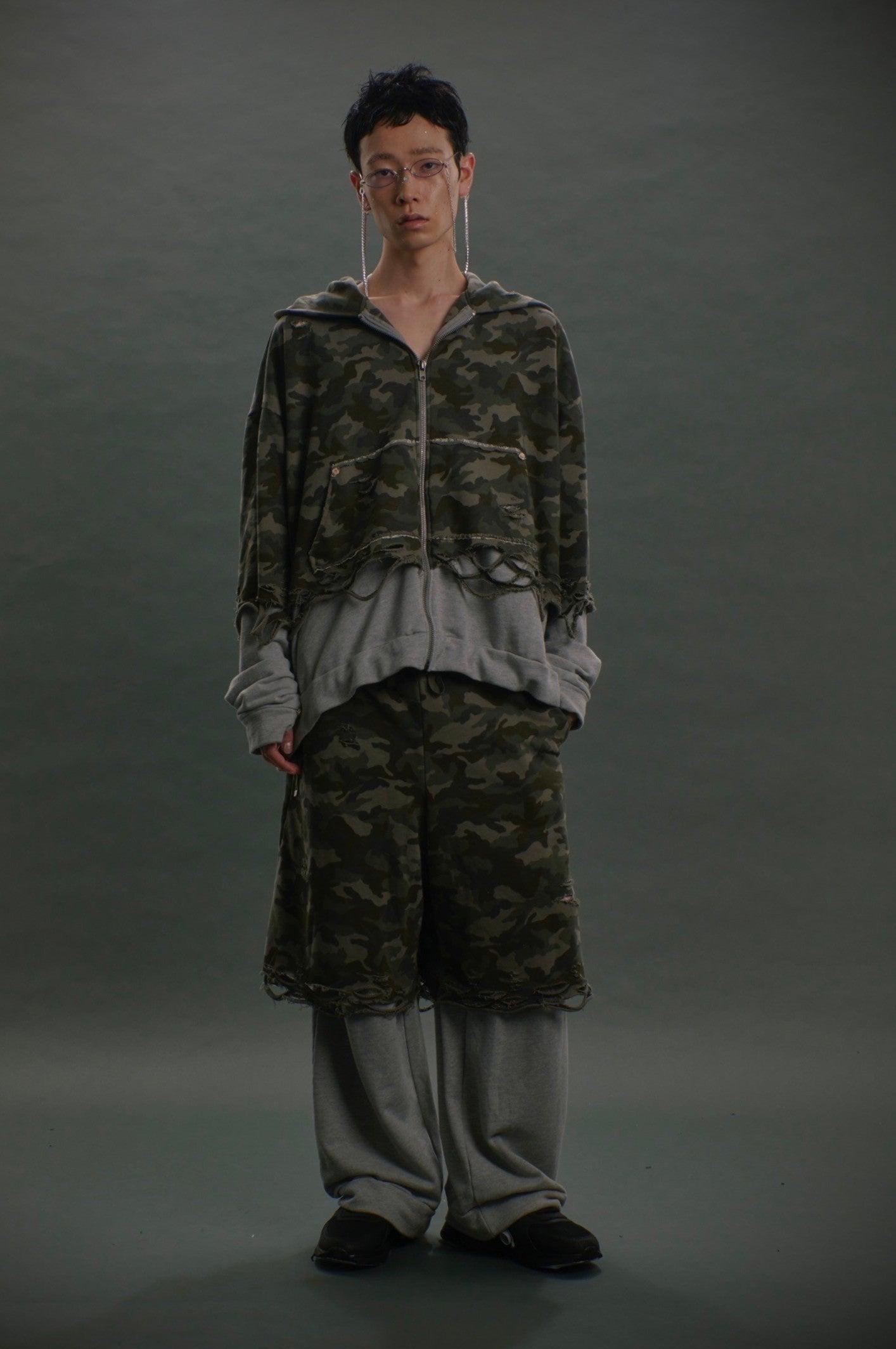 着心地の良いスウェット素材に大胆なダメージ加工を施しました。