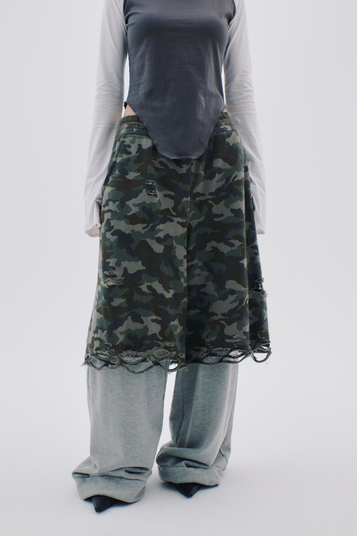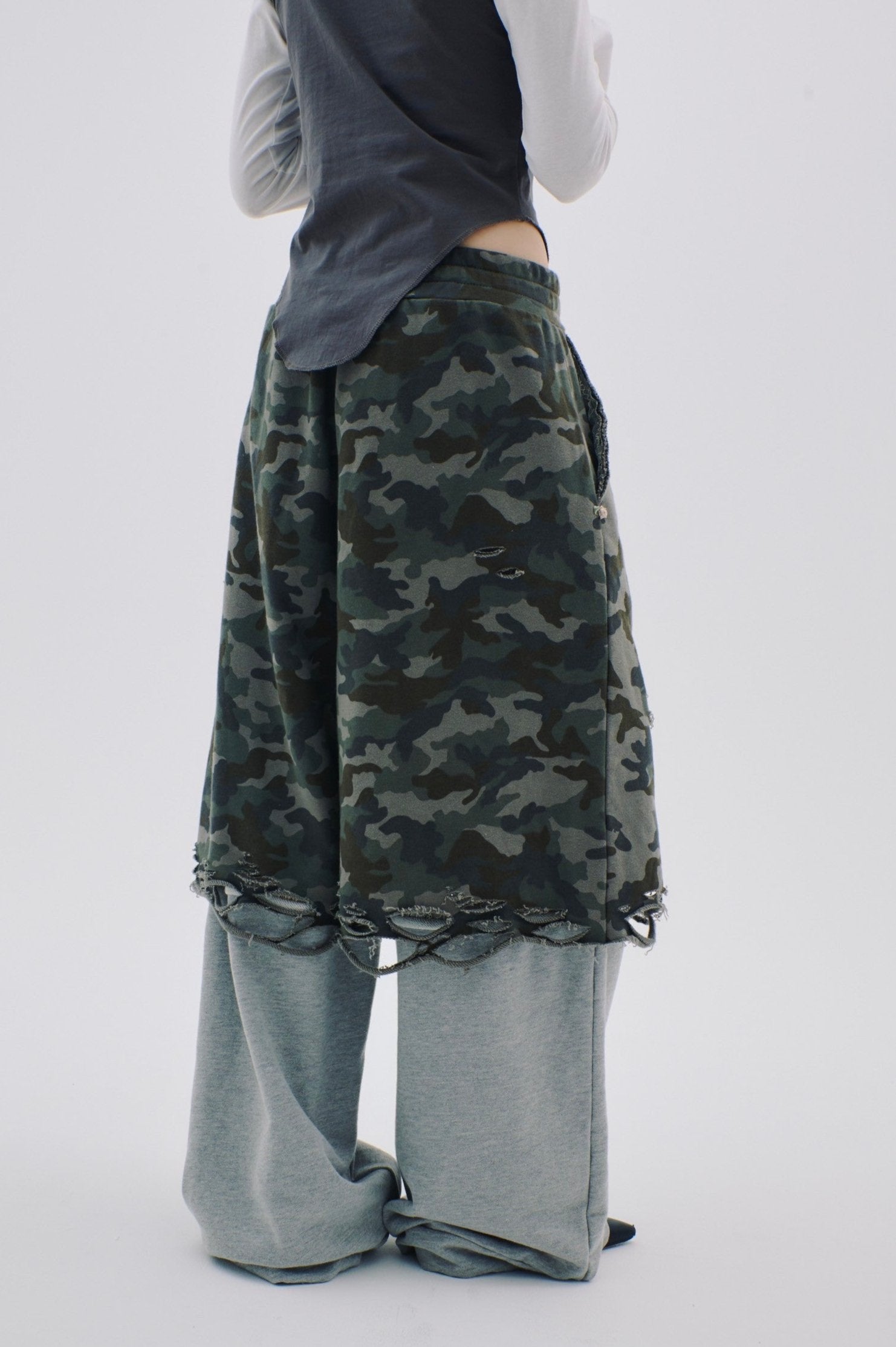 パンツをレイヤードしているような面白いデザイン。ルーズな印象がクールです。