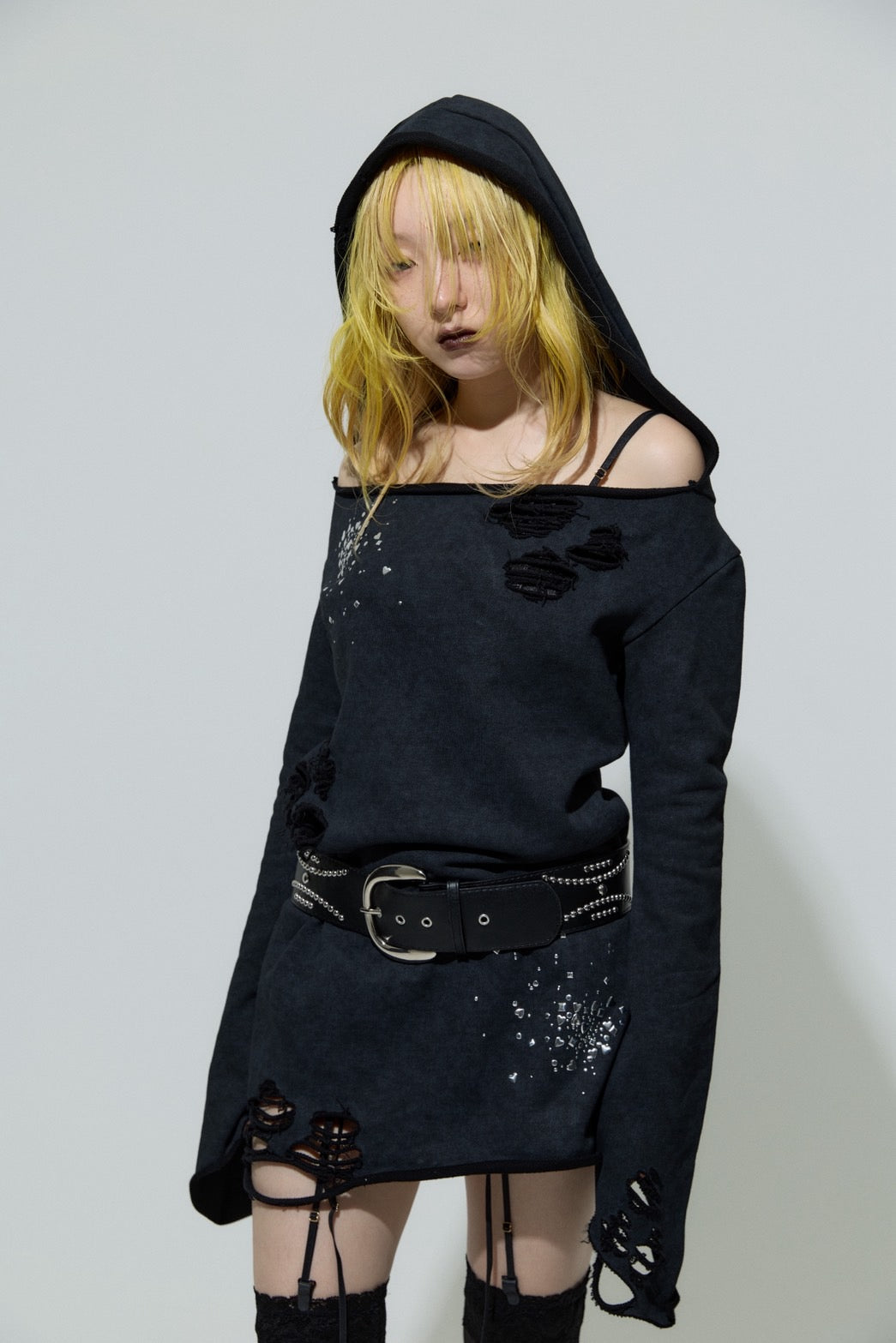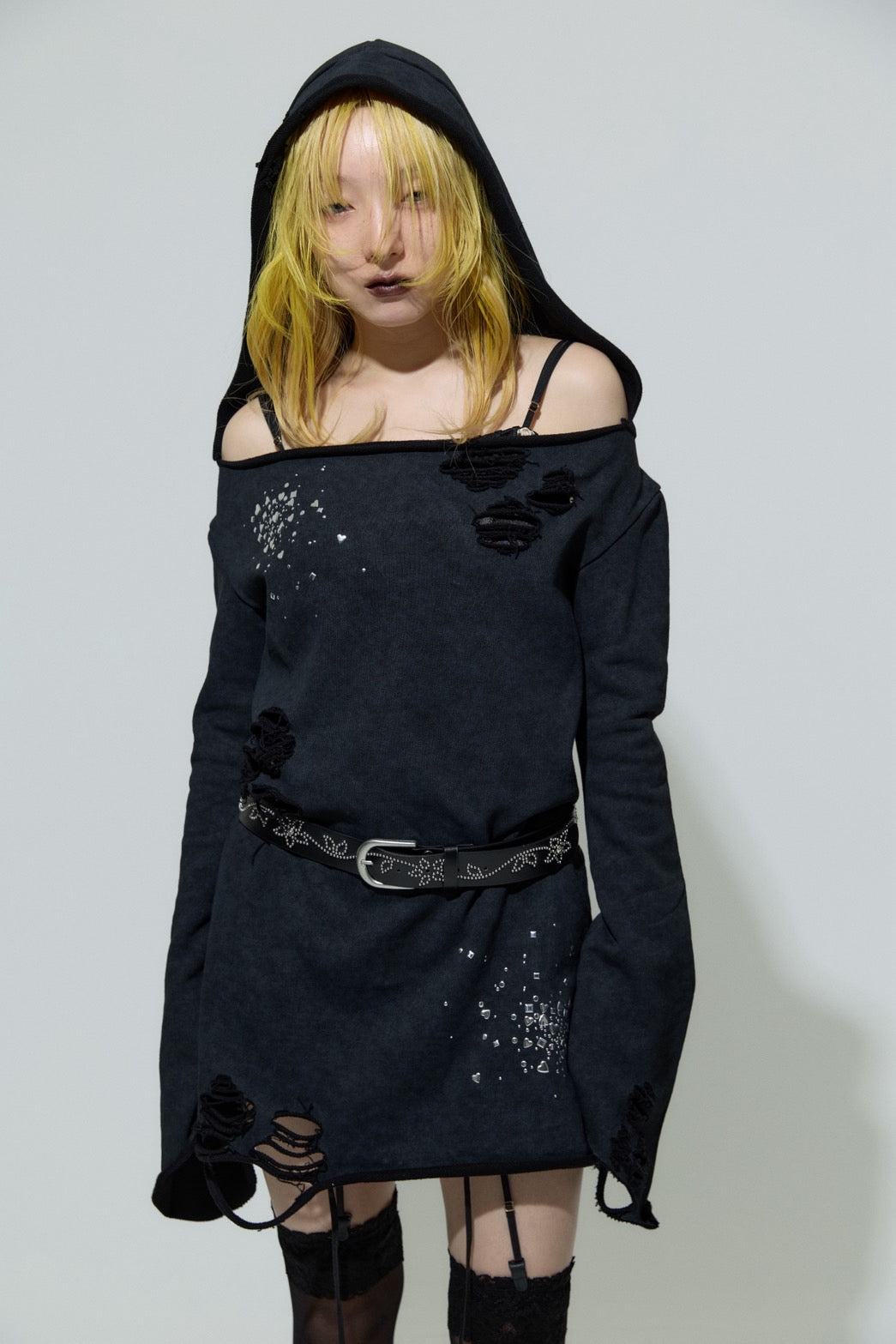 ・重厚感のあるオールブラックに繊細に施されたメタリックのホットフィックス加工が煌めきます