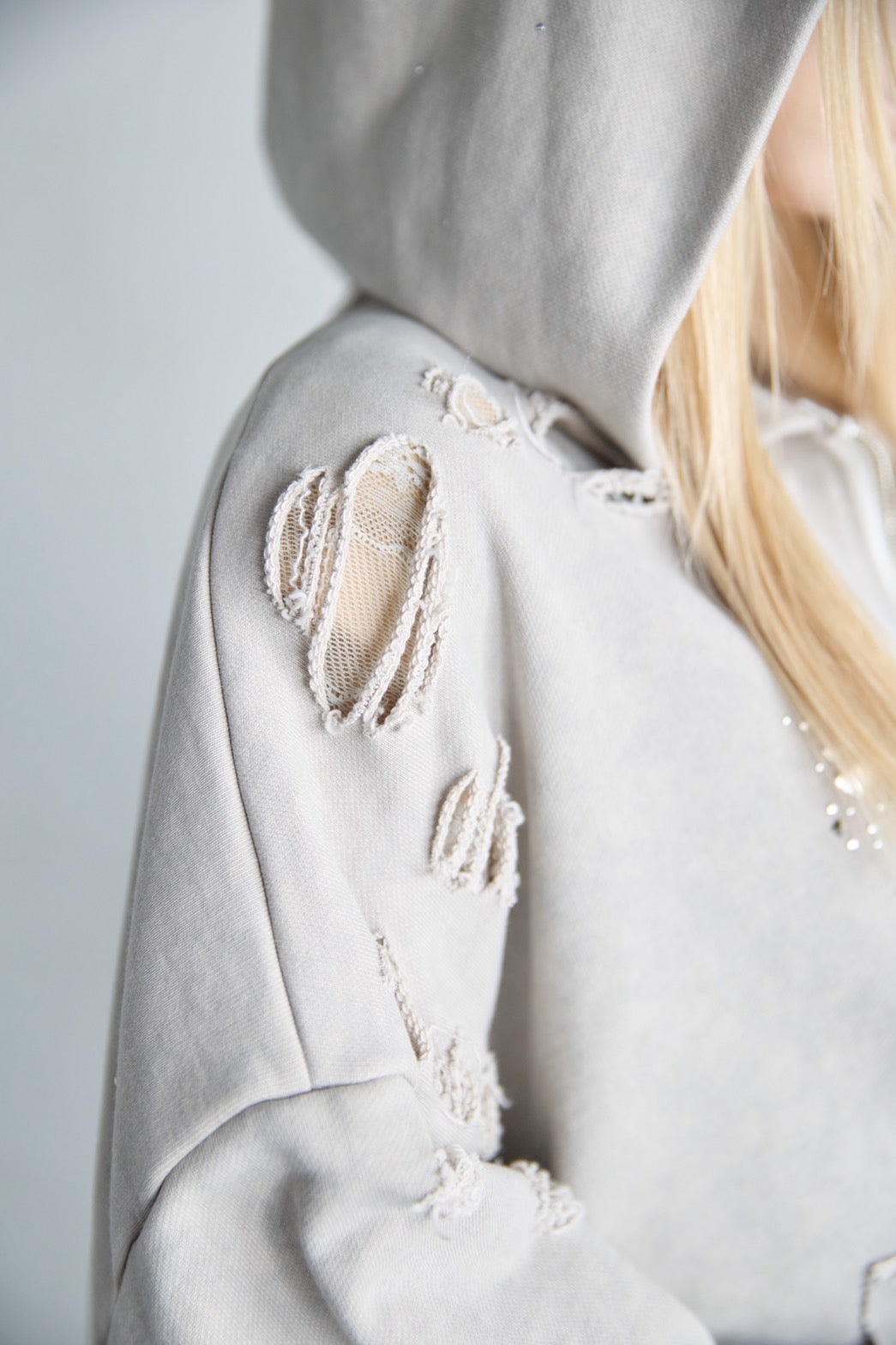 ・繊細に施されたメタリックのホットフィックス加工が煌めきます