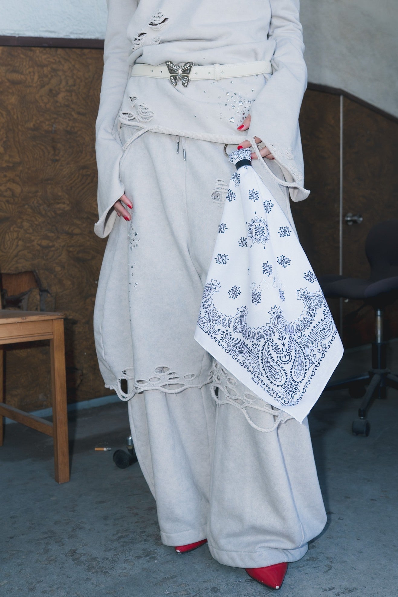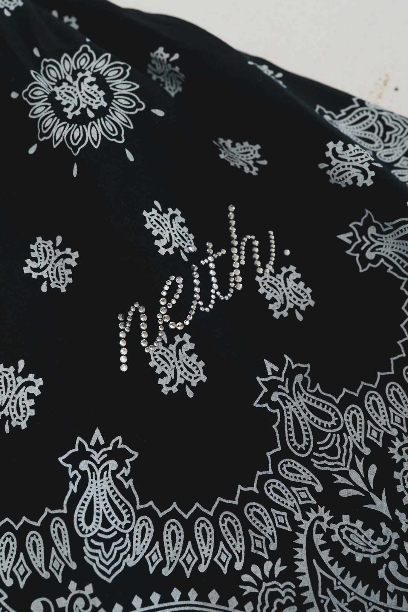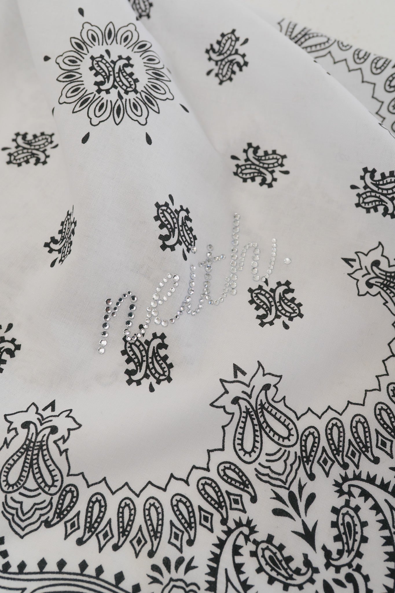 モノトーンのバンダナにneith.のラインストーンロゴを配し、キーチャームに仕上げました。