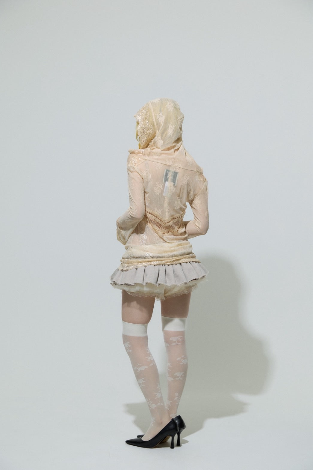・ヴィンテージ加工のを施したグランジ感のある裏毛にチュールの甘さが良いギャップ