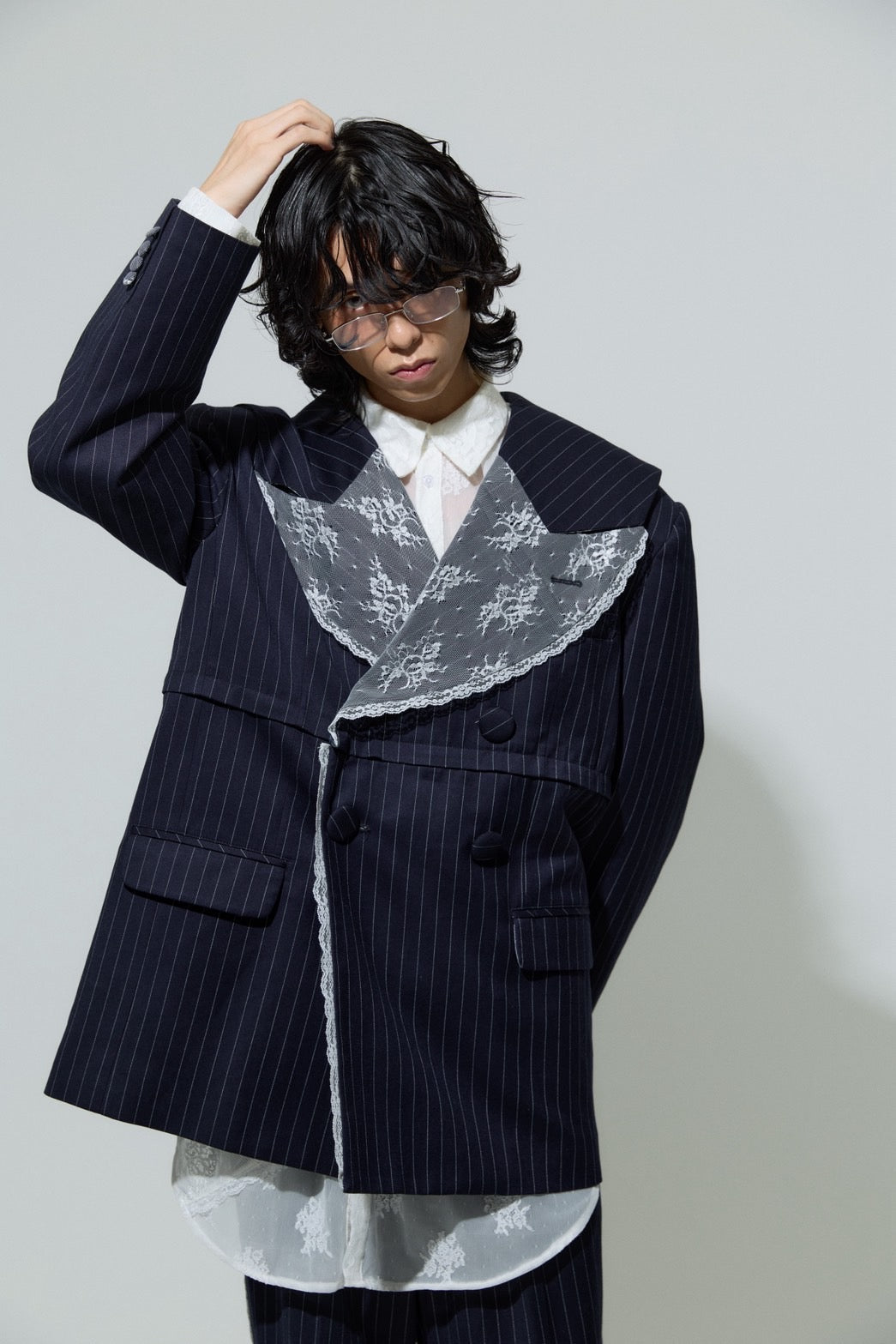 バスト下にあるファスナーを外せばクロップド丈のジャケットに早変わり。全く違う印象のジャケットが姿を表します。セーラーカラーの裏、袖口の折り返し部分にもレースを用い、見えない部分にも気を抜かない、neith.のこだわりを感じさせます。袖口を折り返すとさわやかさと軽やかさが加わり、優しい印象で着用することができます。