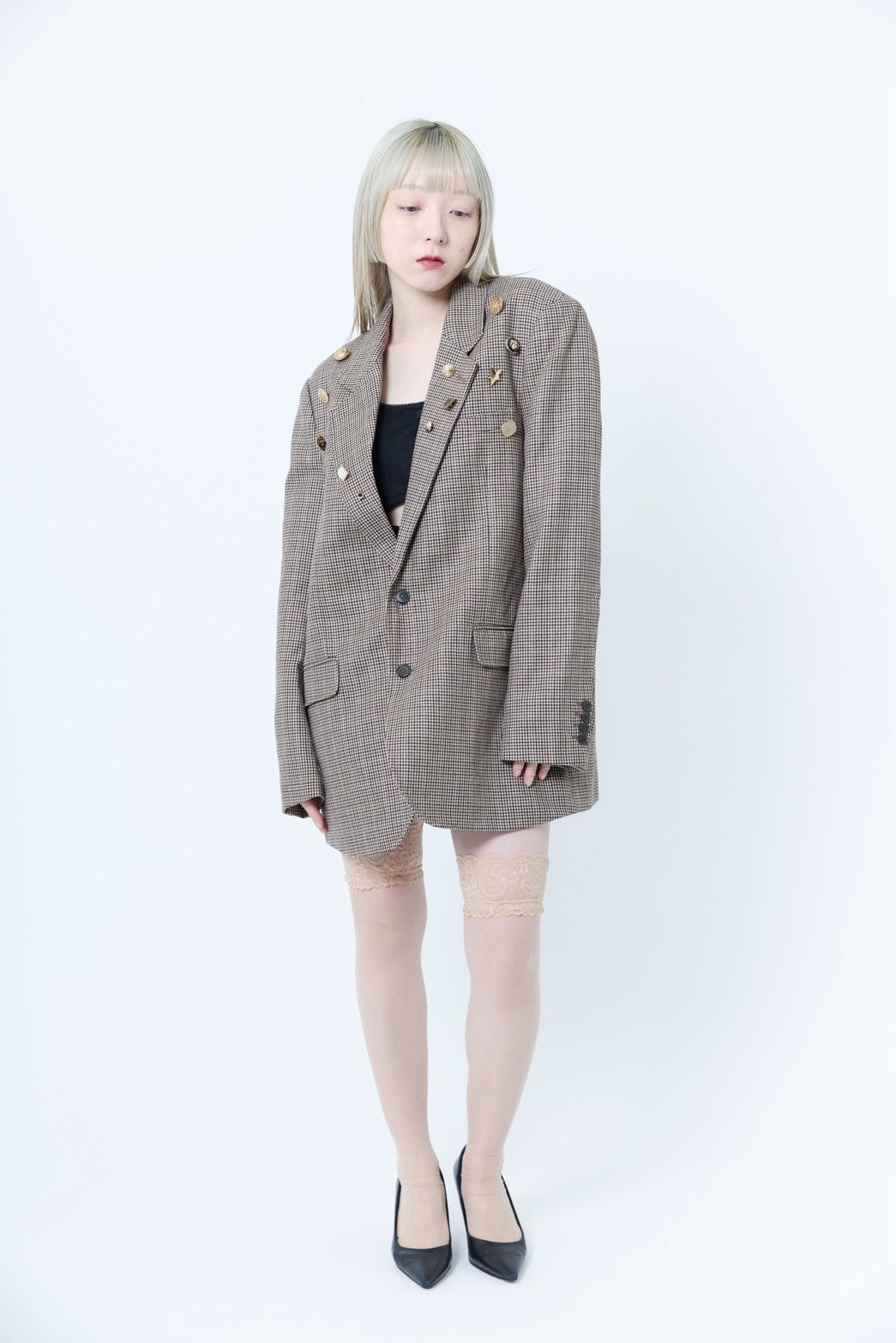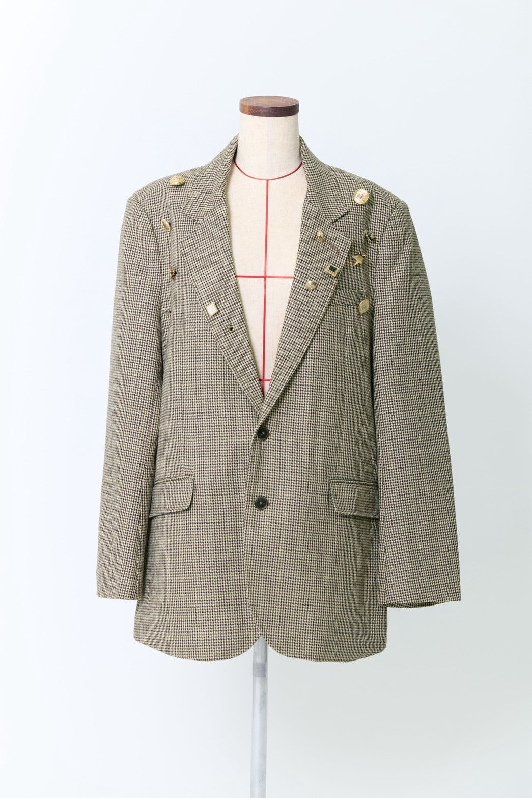 古着のメンズジャケットに、使わなくなったボタンパーツなどを1点1点手作業で縫い付けました。