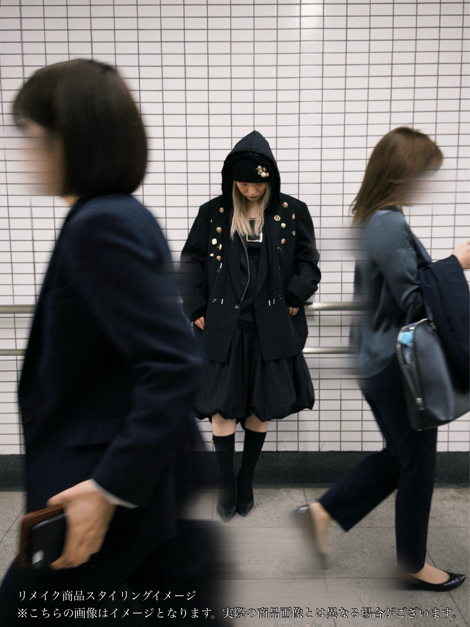 こちらの商品はリメイク商品の1点ものとなっております。ユーズド生地を使用している為、ヨレ、ホツレ、色ムラなどがみられる場合がございますのでご留意の上、お買い求めください。